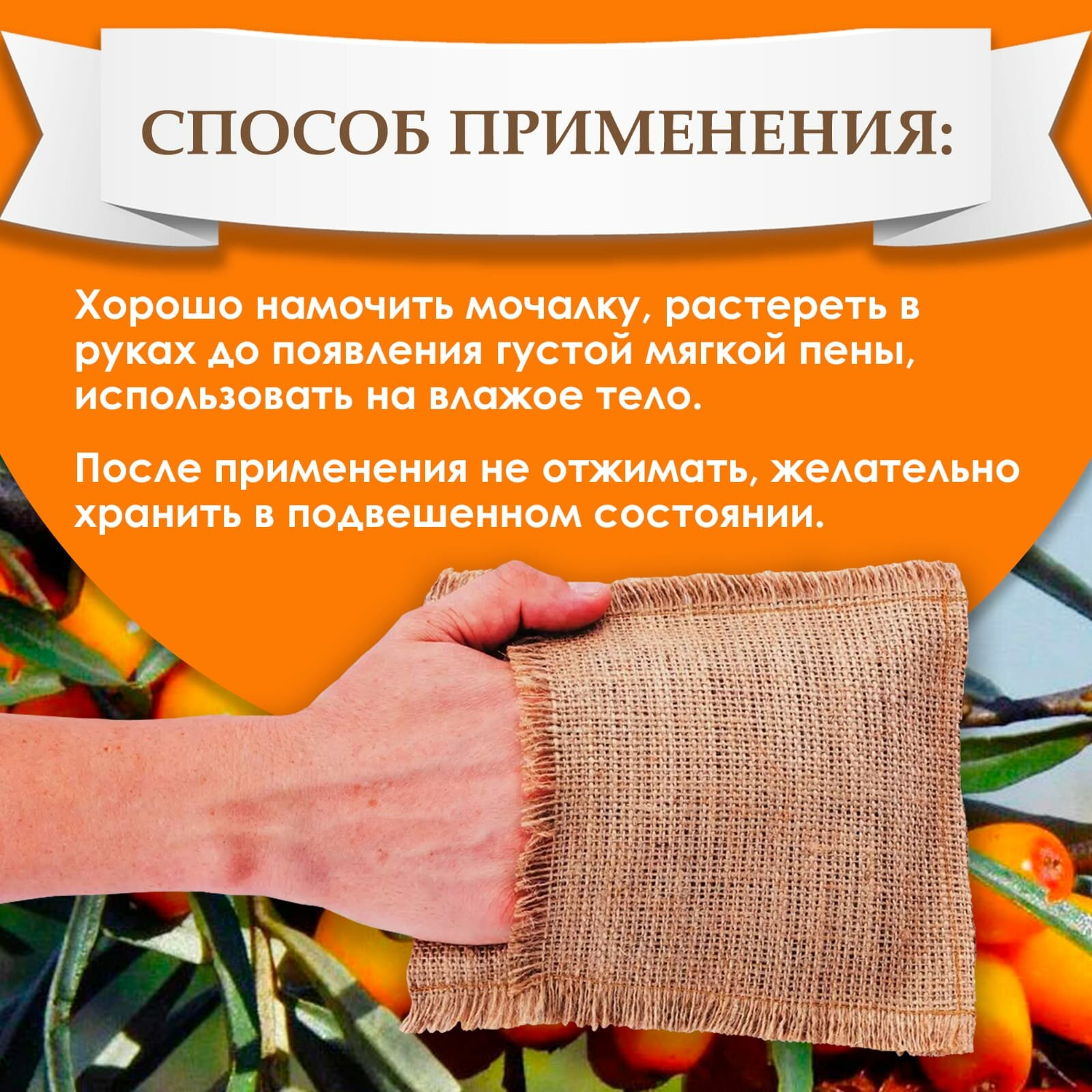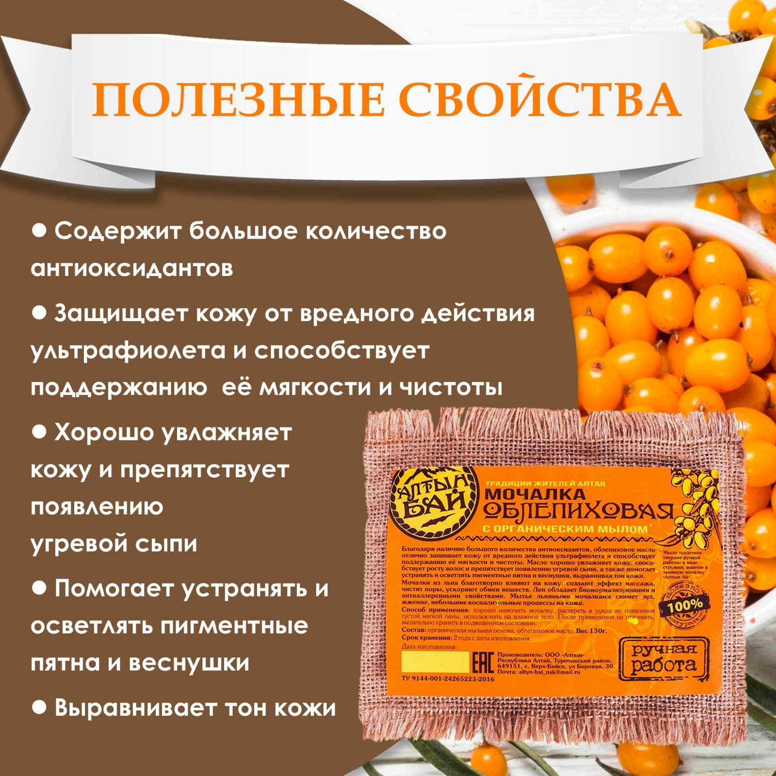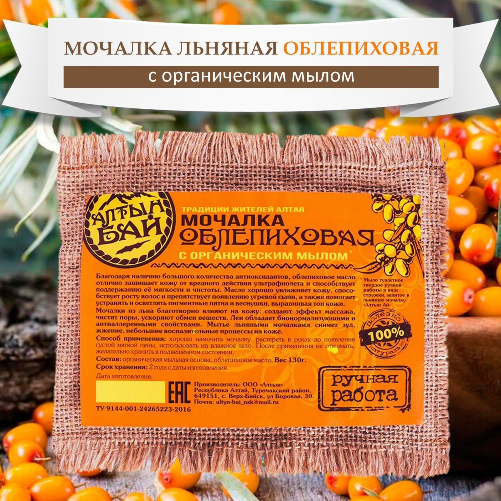 Купить Мочалка облепиховая с органическим мылом "Алтын бай" 130 г 2 штуки