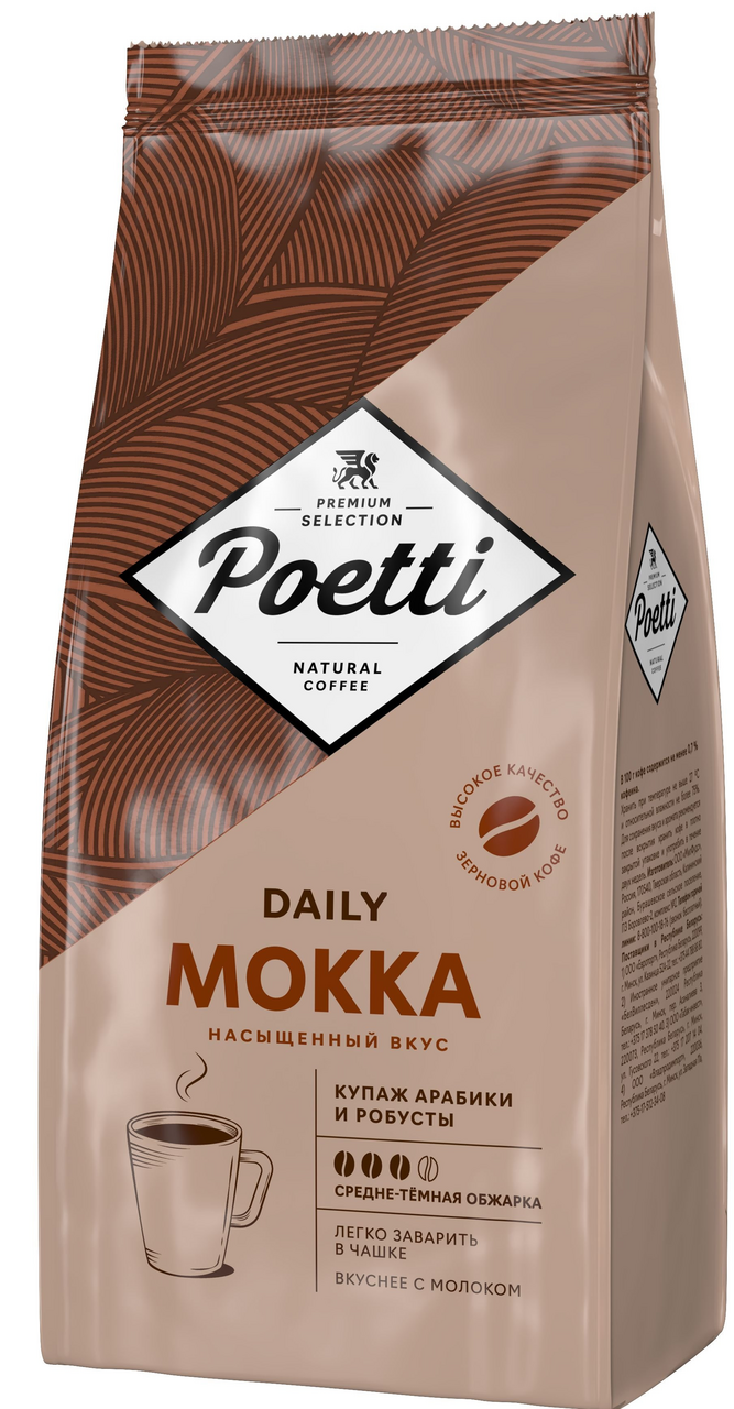 Купить Кофе в зернах Poetti Daily Mokka, натуральный, жареный, 1 кг
