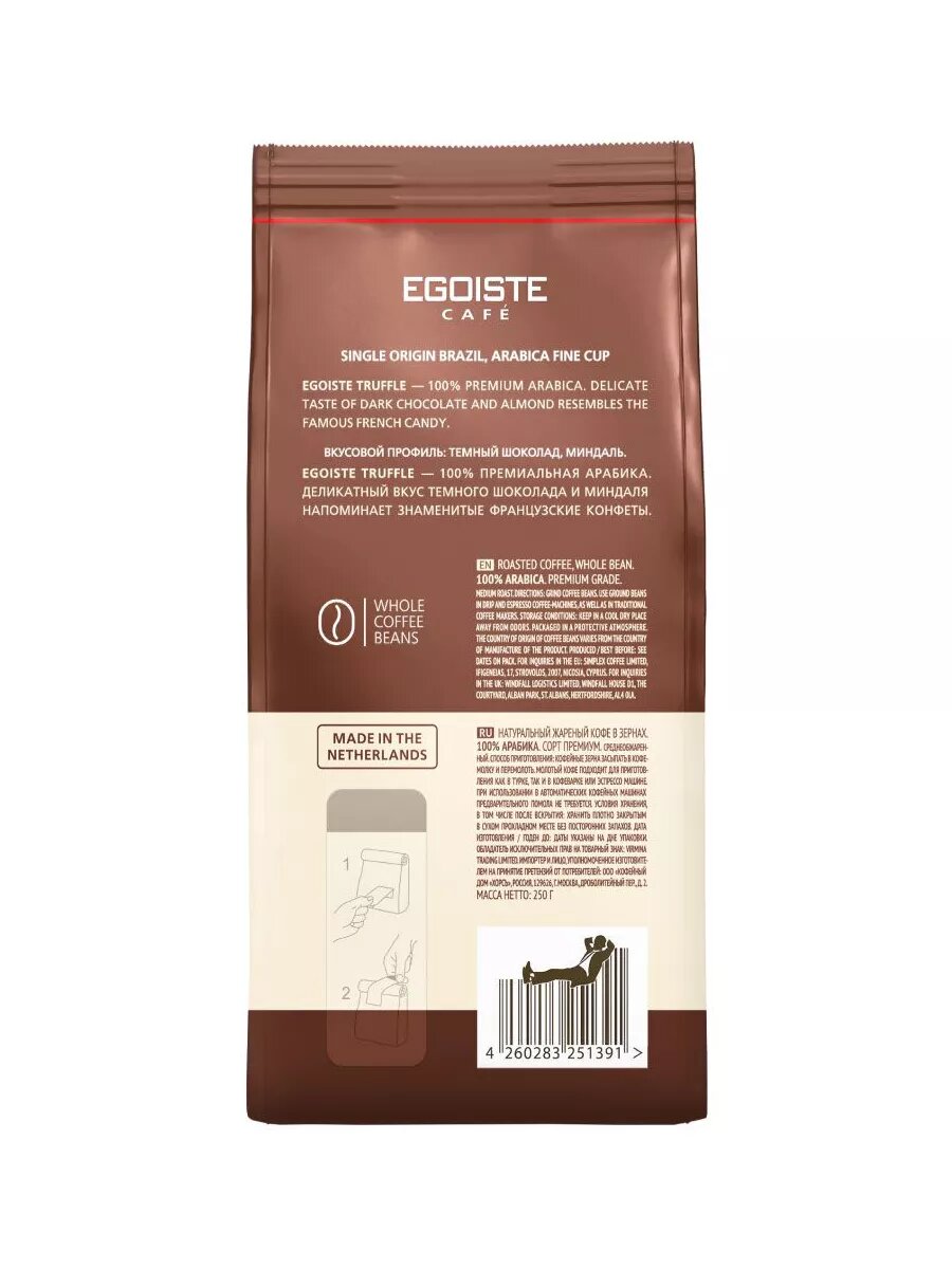 Кофе зерновой натуральный жареный EGOISTE TRUFFLE Arabica Premium (Нидерланды) 250 гр. х 4 шт.