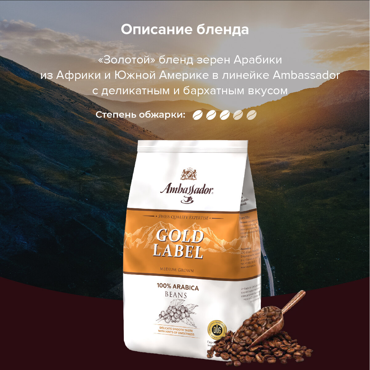 Кофе Ambassador "Gold Label", в зернах, средняя обжарка, 1 кг. интересное: