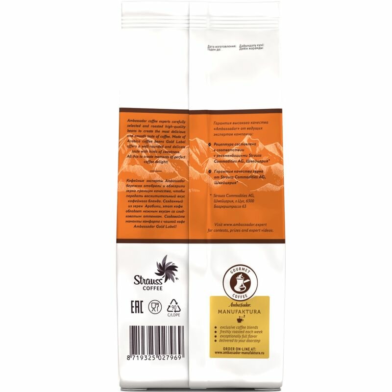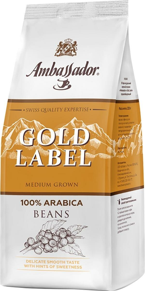 Кофе в зернах Ambassador Gold Label, средняя обжарка, 200 г интересное: