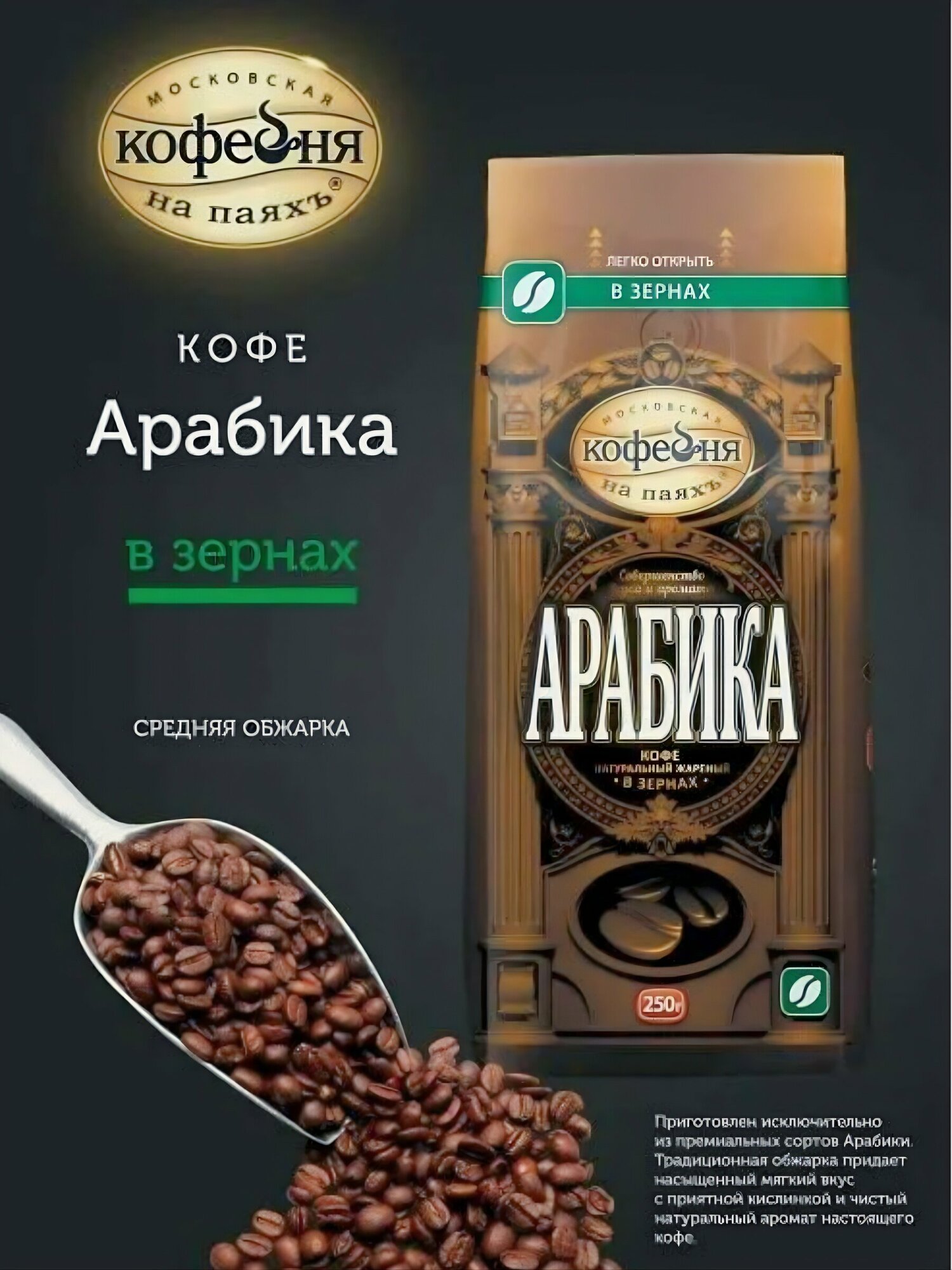 СохранитьКофе в зернах Московская кофейня на паяхъ Арабика, 250 г интересное: