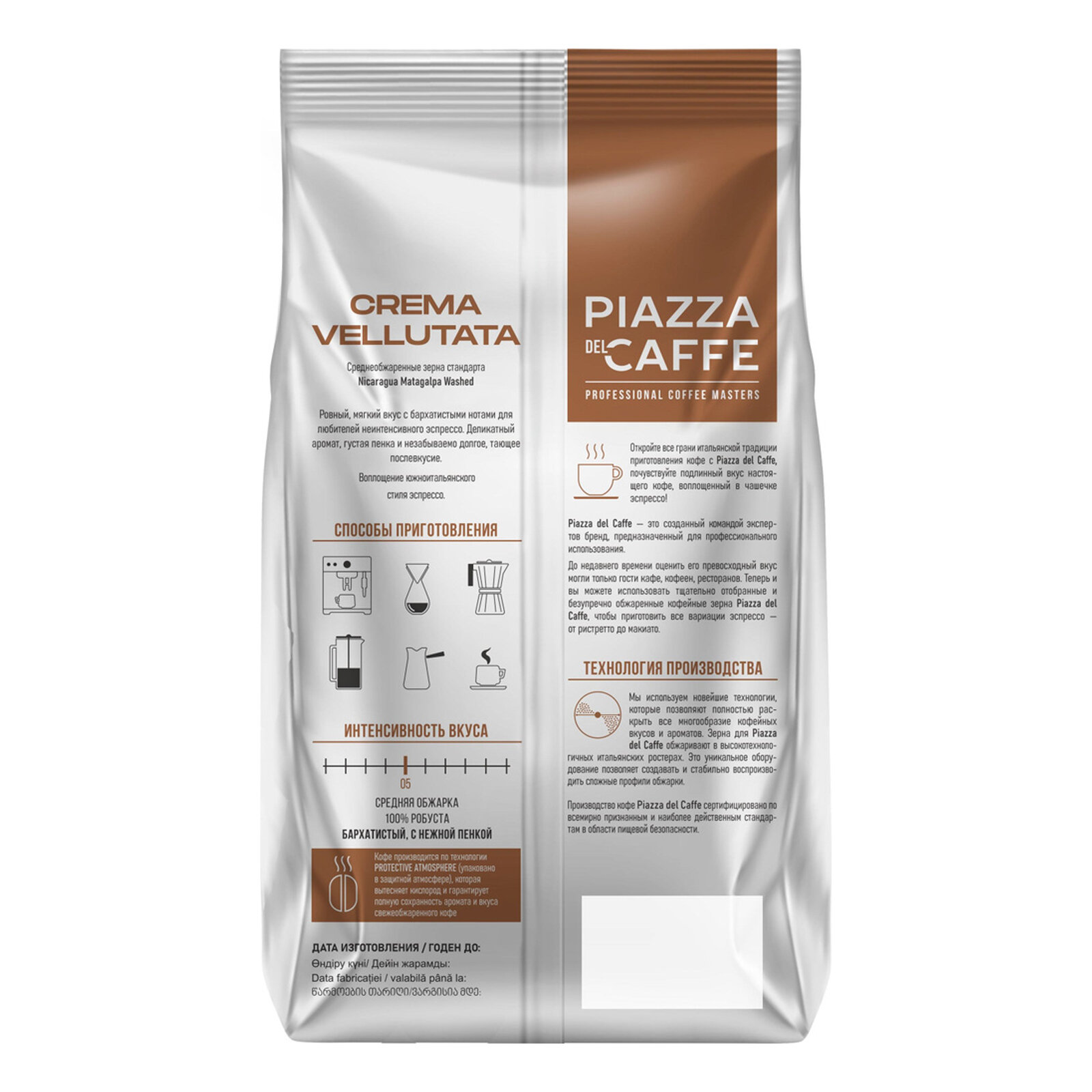 СохранитьКофе в зернах PIAZZA DEL CAFFE Crema Vellutata, средняя обжарка, 100% Робуста, 1 кг интересное: