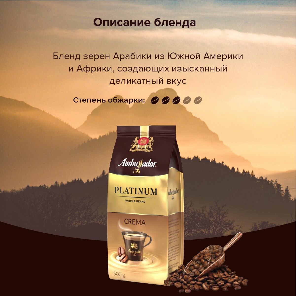 Кофе Ambassador "Platinum Crema", в зернах, средняя обжарка, 500 г. интересное:
