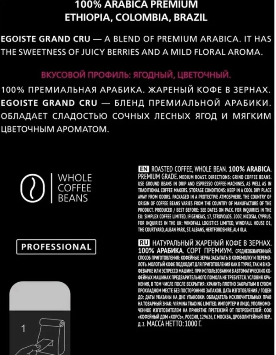 Купить Кофе в зернах Egoiste Grand Cru, 1 кг