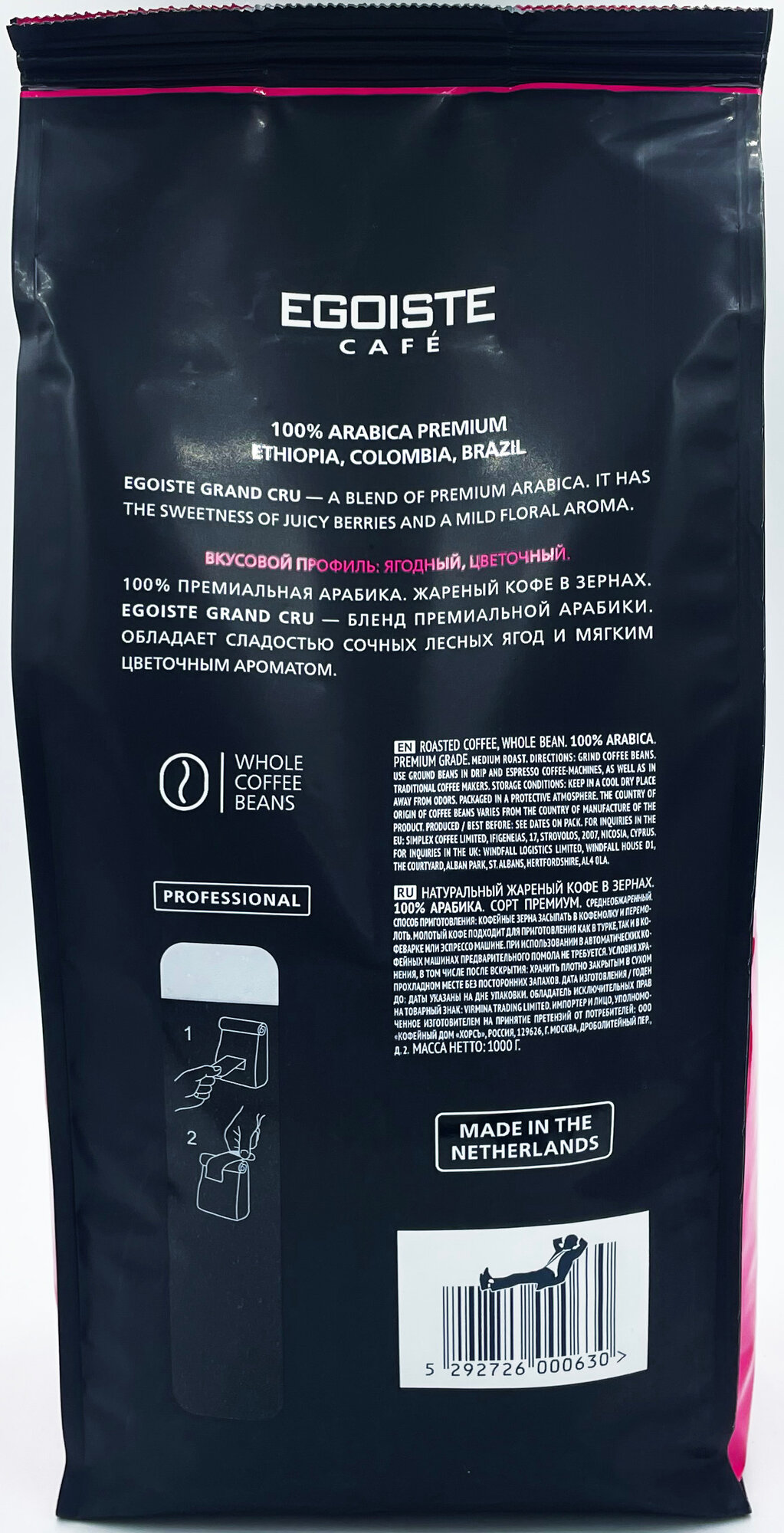 Кофе в зернах натуральный, жареный EGOISTE GRAND CRU Арабика 100% (Нидерланды) 250 гр. х 4 шт.