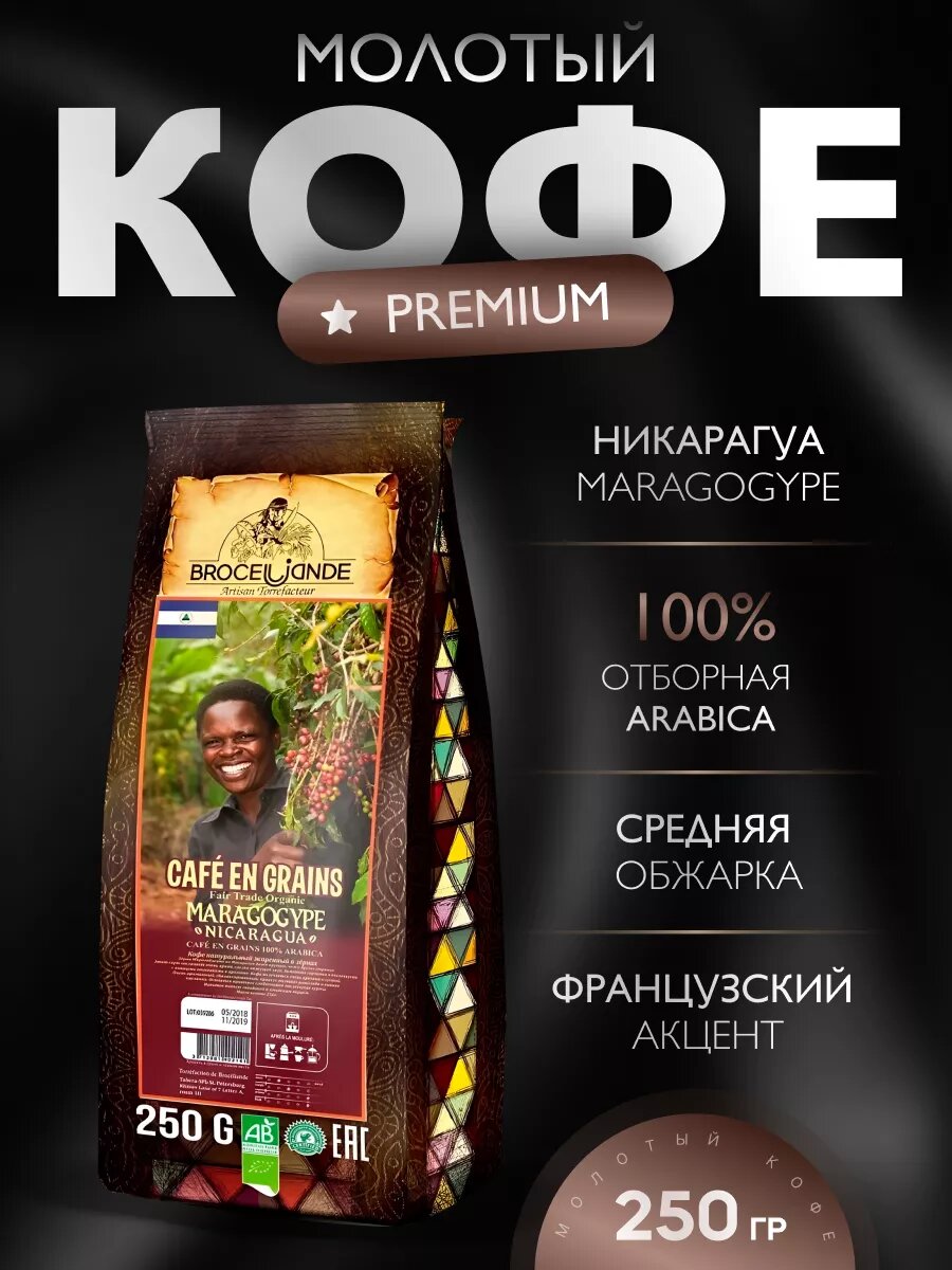 Broceliande Кофе в зернах Никарагуа марагаджип, 250 гр