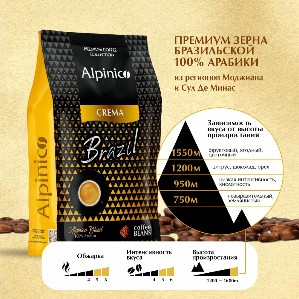 Кофе в зернах 1 кг, Alpinico "Crema Brazil", 100% Бразильская Арабика, средняя обжарка интересное: