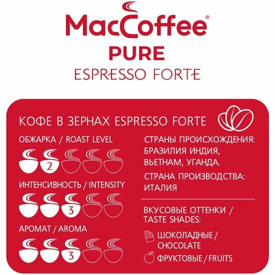 Ниже Вы можете прочитать отзывы на Кофе в зернах Maccoffee PURE Espresso Forte 1 кг, ознакомится с подробными характеристиками, посмотреть интересные обзоры и фотографии на Кофе в зернах Maccoffee PURE Espresso Forte 1 кг.