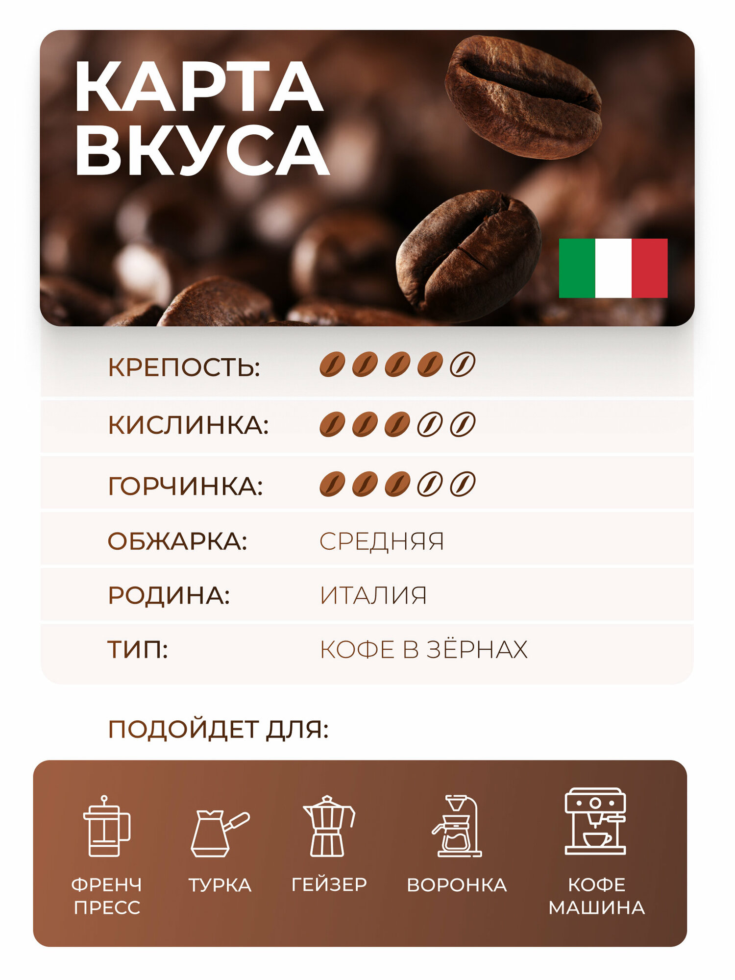 | Состав | 50% арабика, 50% робуста |
