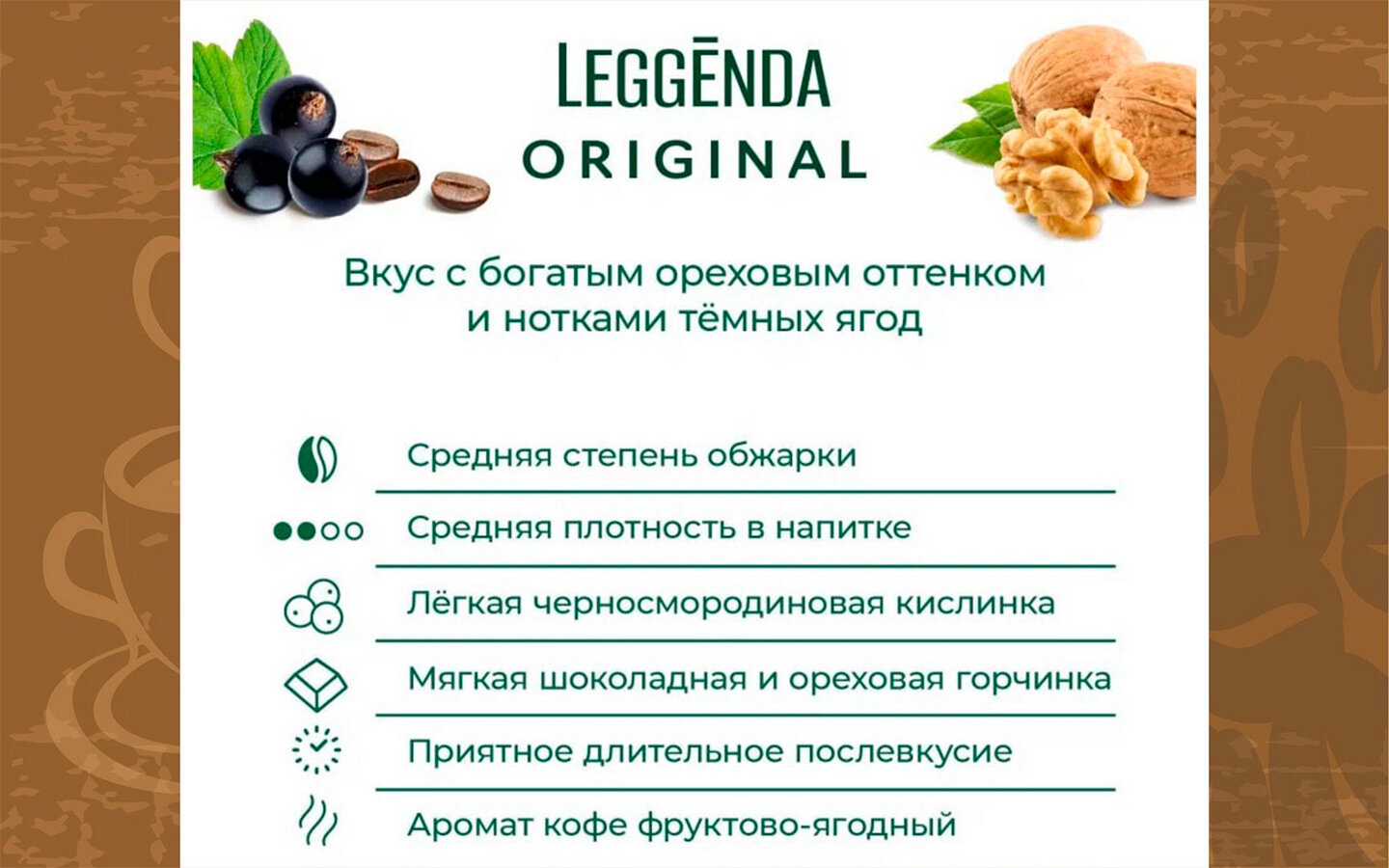 | Дополнительная информация | в 100 г кофе содержится не менее 0,7 % кофеина; рекомендуется 3-4 ч.л. молотого кофе на 200-250 мл воды |