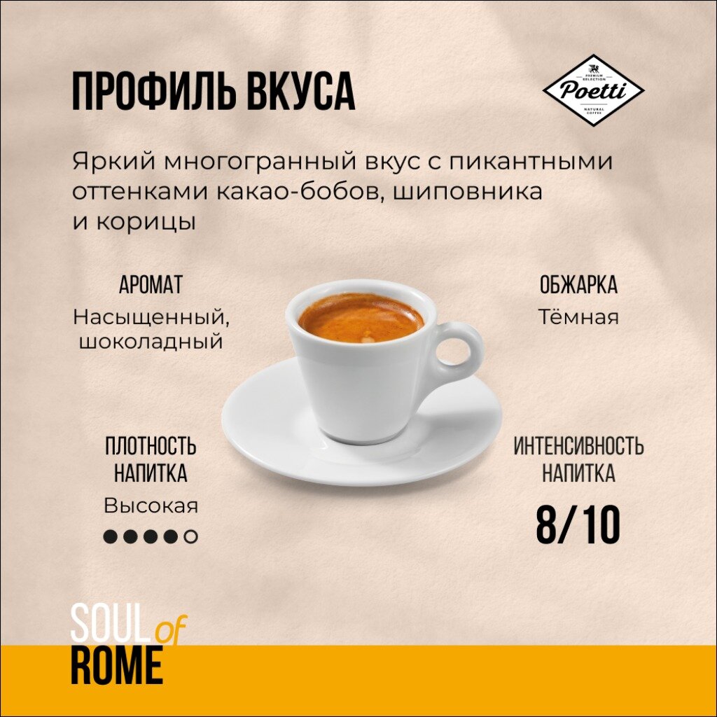 Кофе молотый Poetti Soul of Rome, 200 г интересное: