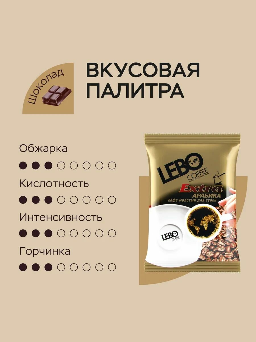 Кофе молотый Lebo Extra Арабика 100% , Приготовление - Турка, 6 шт, 600 г
