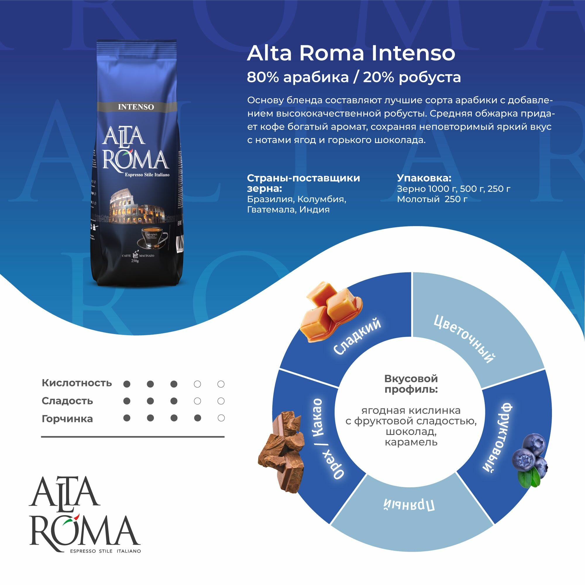 Alta Roma, Кофе молотый Intenso, 250 грамм интересное: