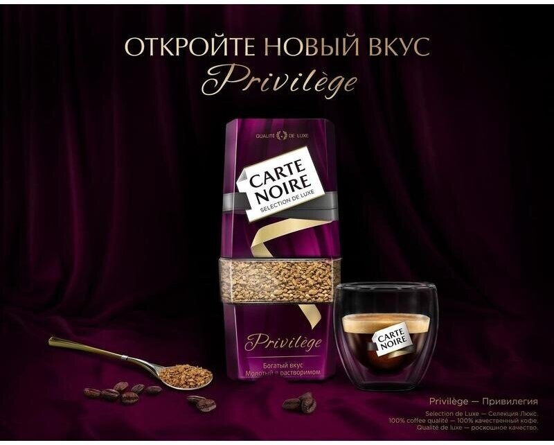 Кофе растворимый CarteNoire Privilège с молотым кофе 95г интересное: