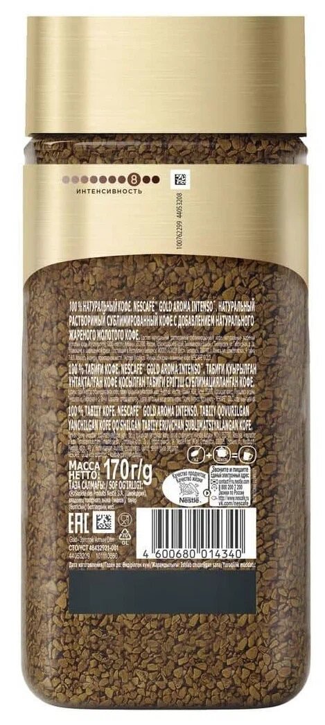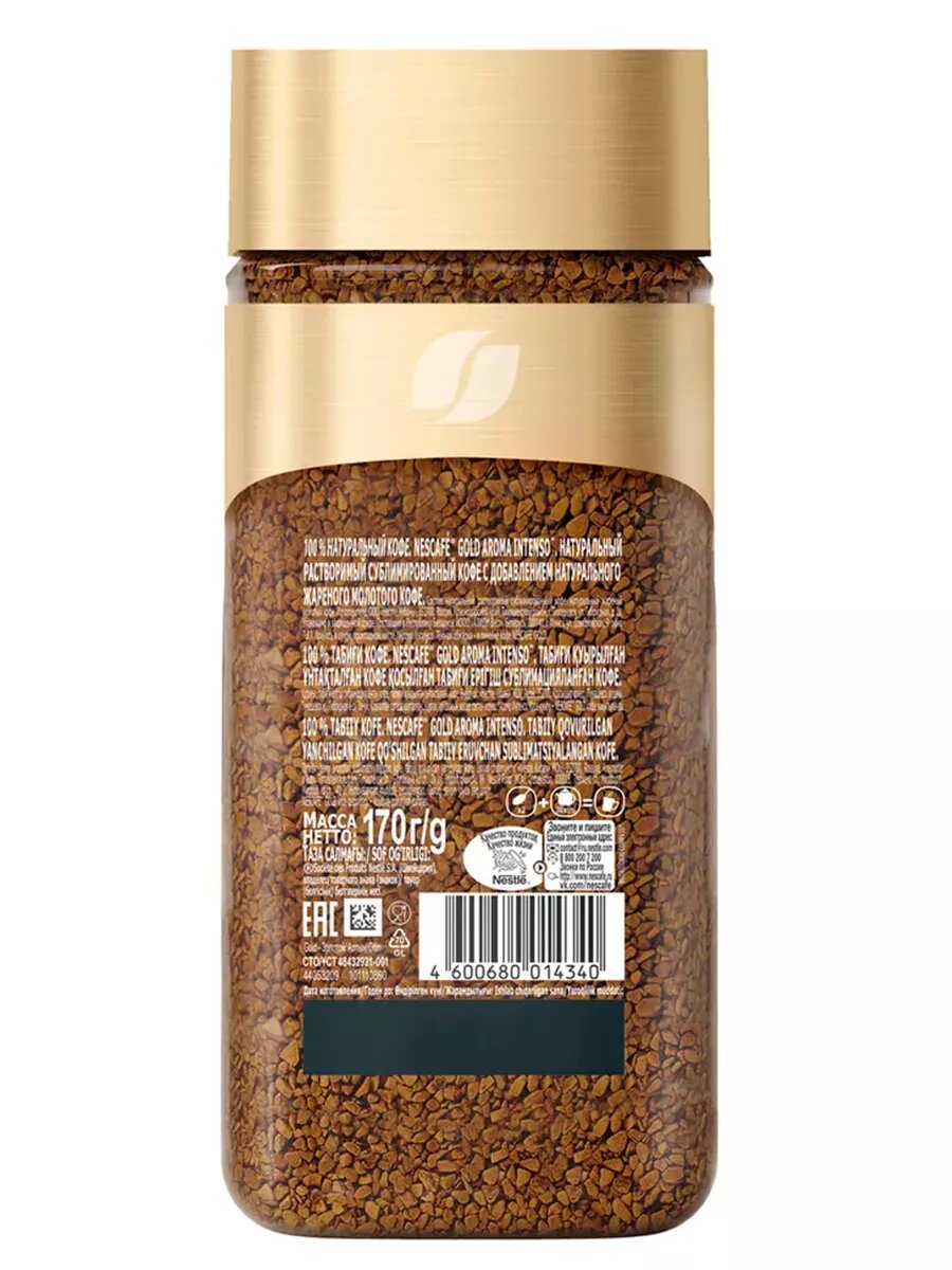 СохранитьКофе растворимый Nescafe Gold Aroma Intenso c молотым кофе, стеклянная банка, 170 г интересное:
