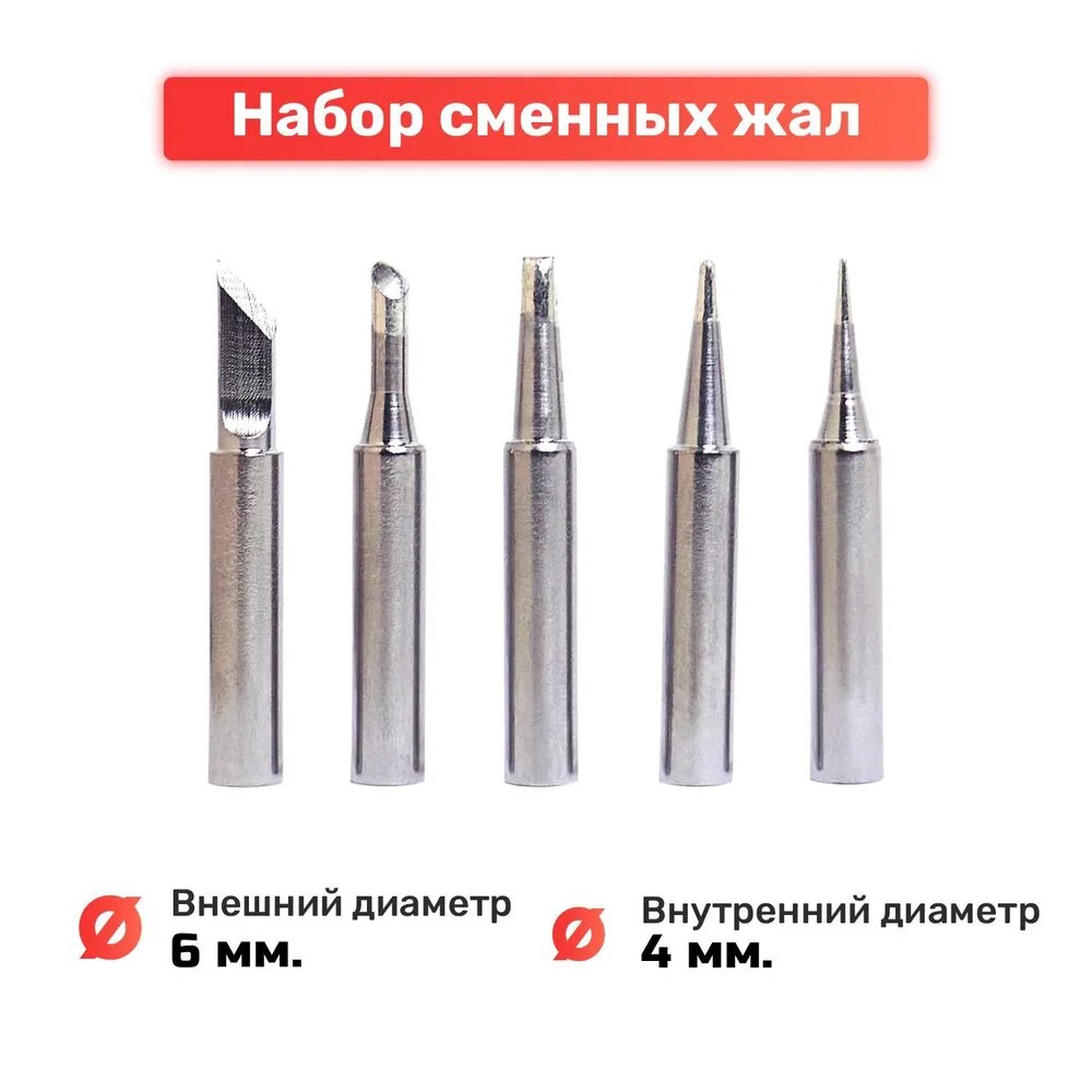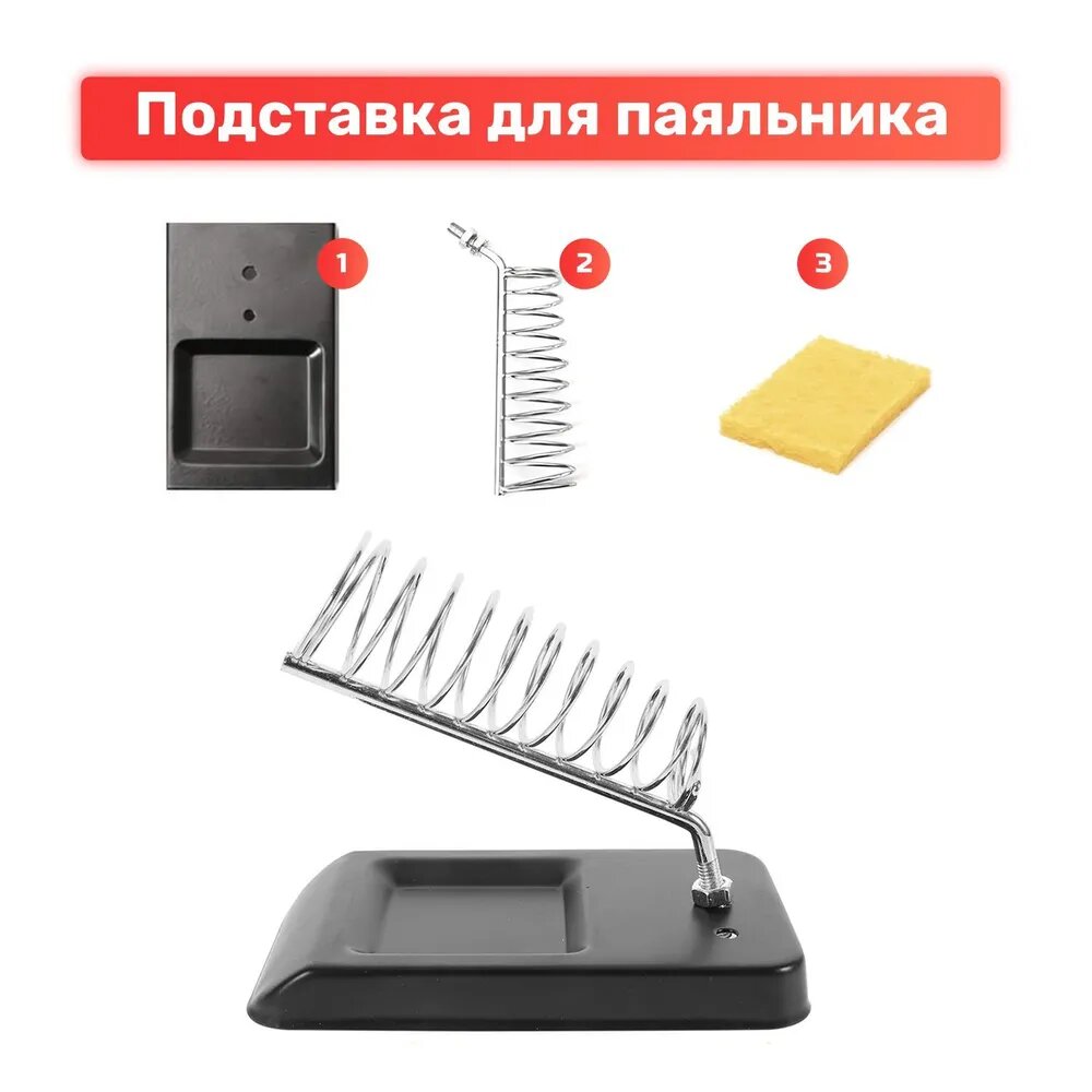 | Комплектация | Паяльник 80 Вт — 1 шт. Комплект дополнительных сменных жал типа 900М — 5 шт. Подставка для пайки — 1 шт. Губка для чистки паяльника — 1 шт. Припой для пайки — 1 шт. |