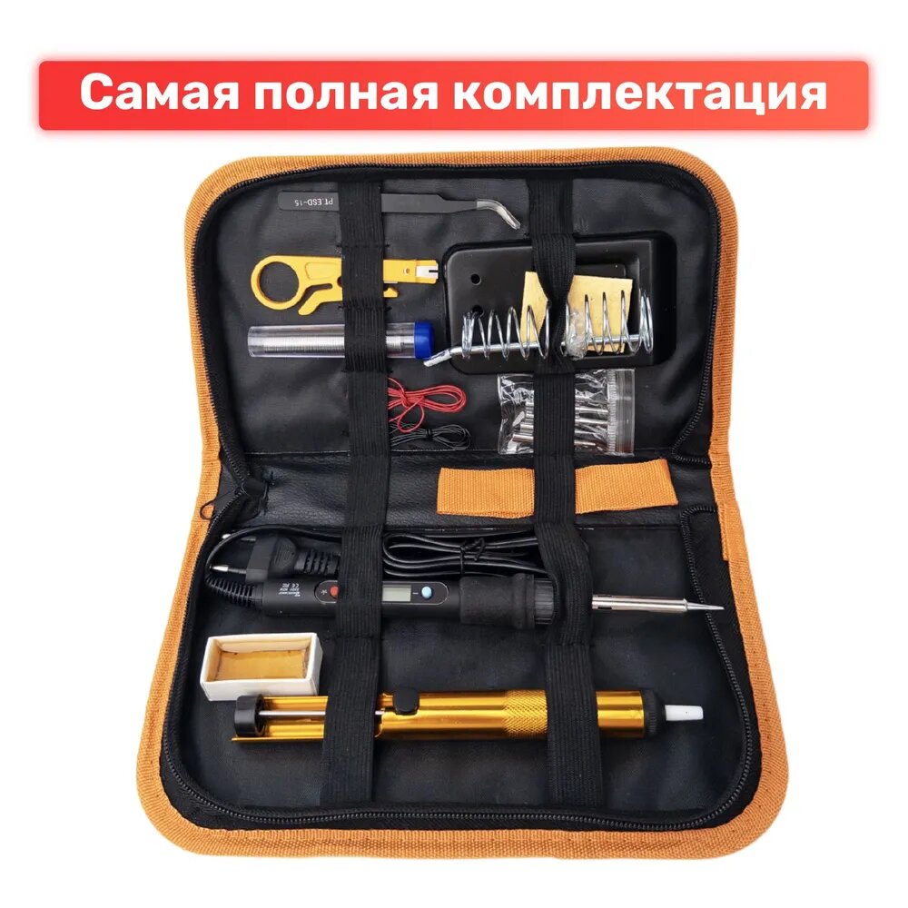 Паяльник электрический с регулировкой температуры и ЖК дисплеем 80 Вт Sumsour, паяльный набор, 15 предметов