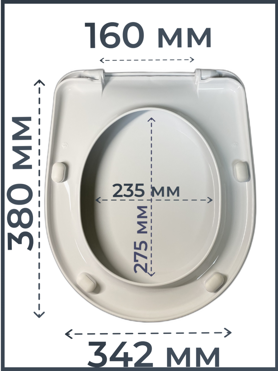 Сиденье для унитаза (Sanita, Оскольская керамика) Крепление 165 мм, Длинна 393 мм, Ширина 351 мм