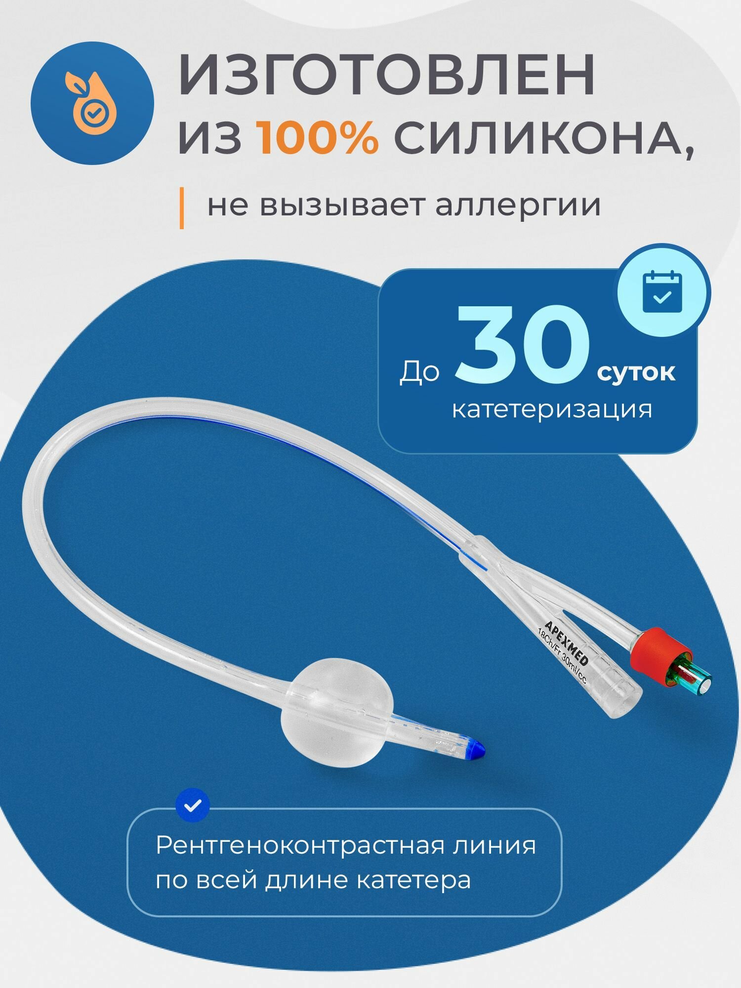APEXMED Катетер Фолея урологический женский Ch/Fr 18, двухходовой, силиконовый, уретральный интересное: