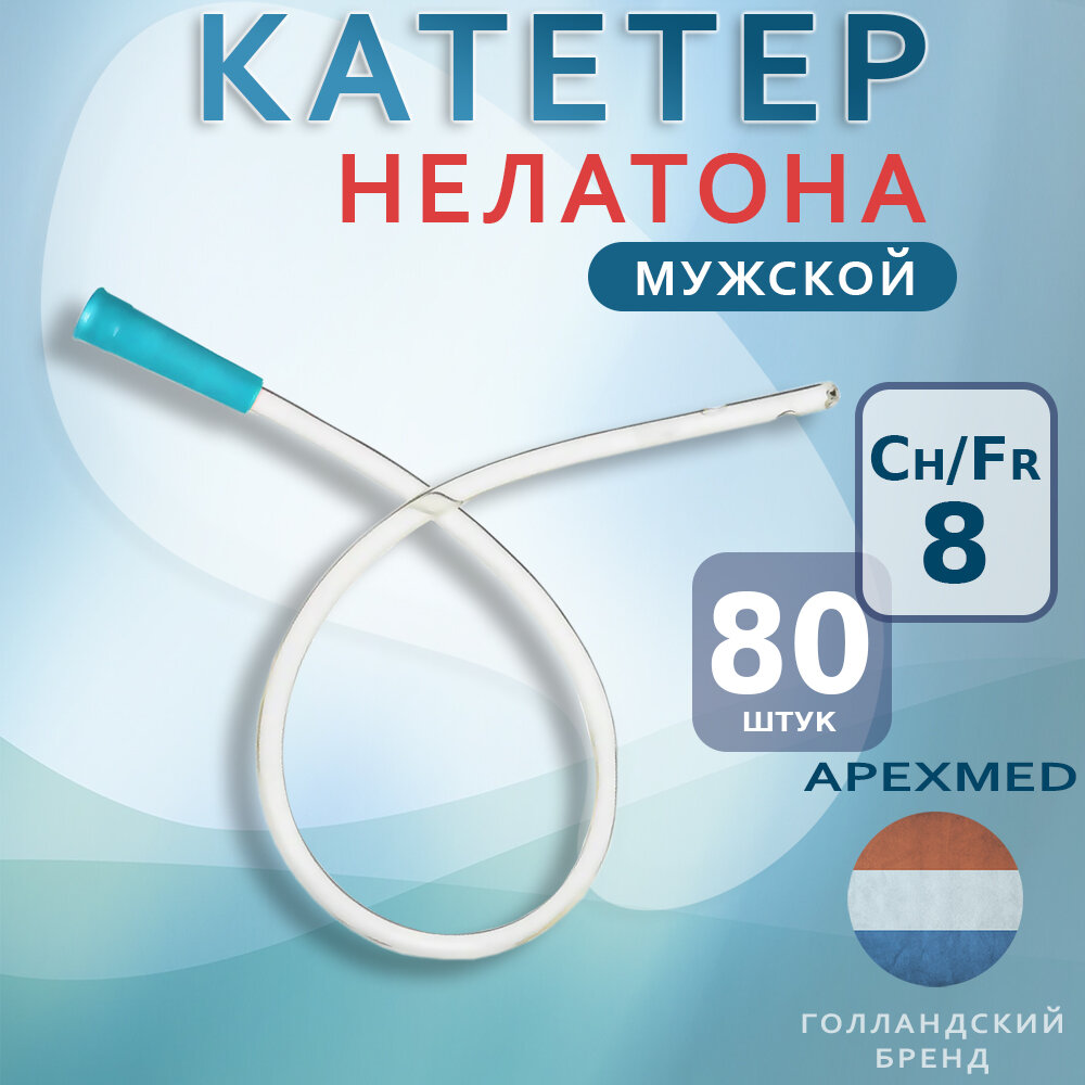 Катетер медицинский Нелатона Ch08 мужской урологический Apexmed, длина 40 см, 80 штук интересное: