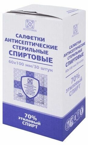 Спиртовые салфетки антисептические 60х100 мм комплект 30 шт., асептика, короб, ЦБ03230-МО05