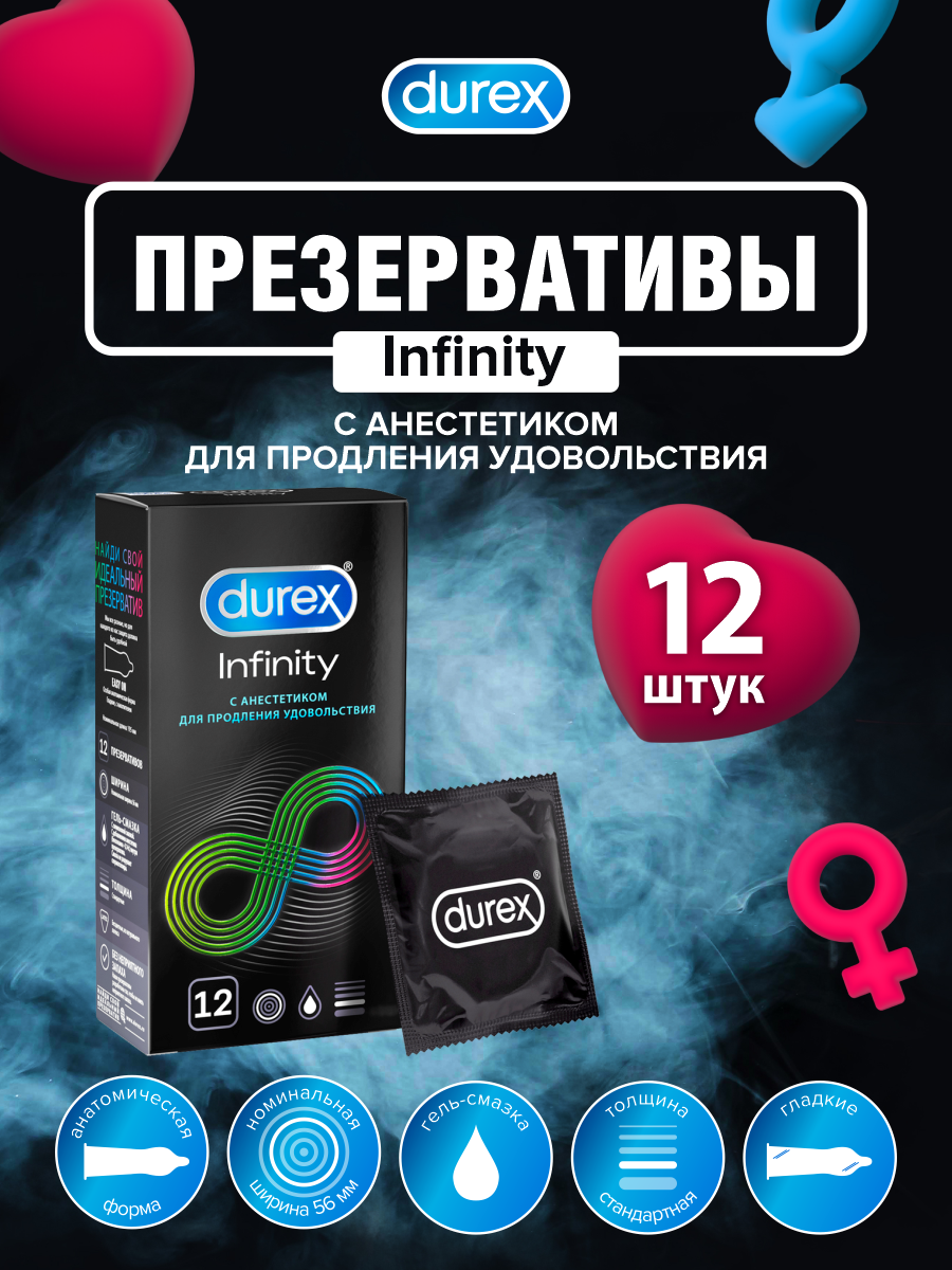 Презервативы Durex Infinity с анестетиком для продления удовольствия, 12 шт. интересное: