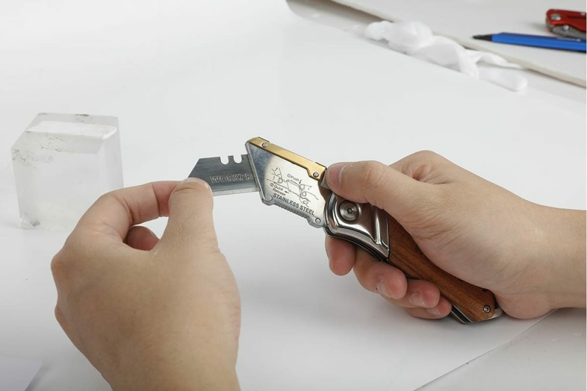 Складной нож WORKPRO ручка из дерева, 10 лезвий, трапециевидные лезвия WP211014
