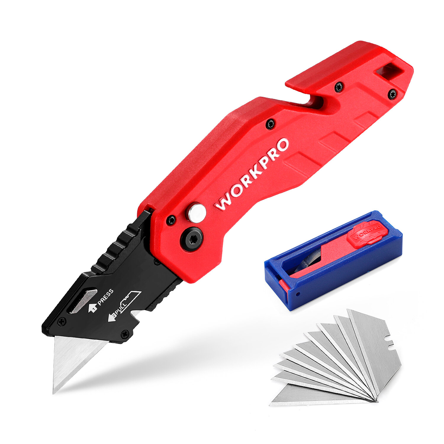 Нож складной универсальный + 10 лезвий WP211008, WORKPRO #WP211008