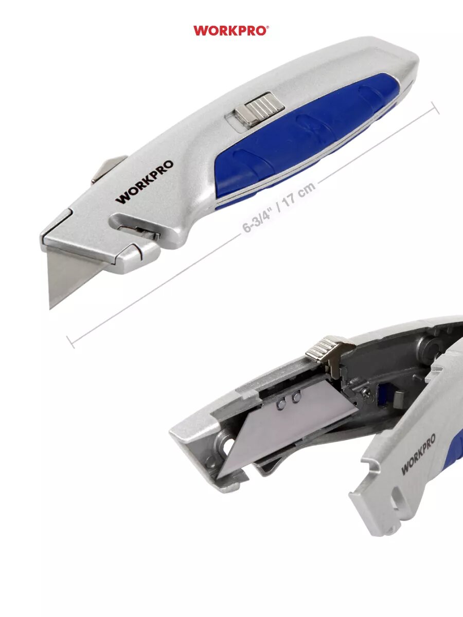 Нож выдвижной строительный WORKPRO W013011, в алюминиевом корпусе