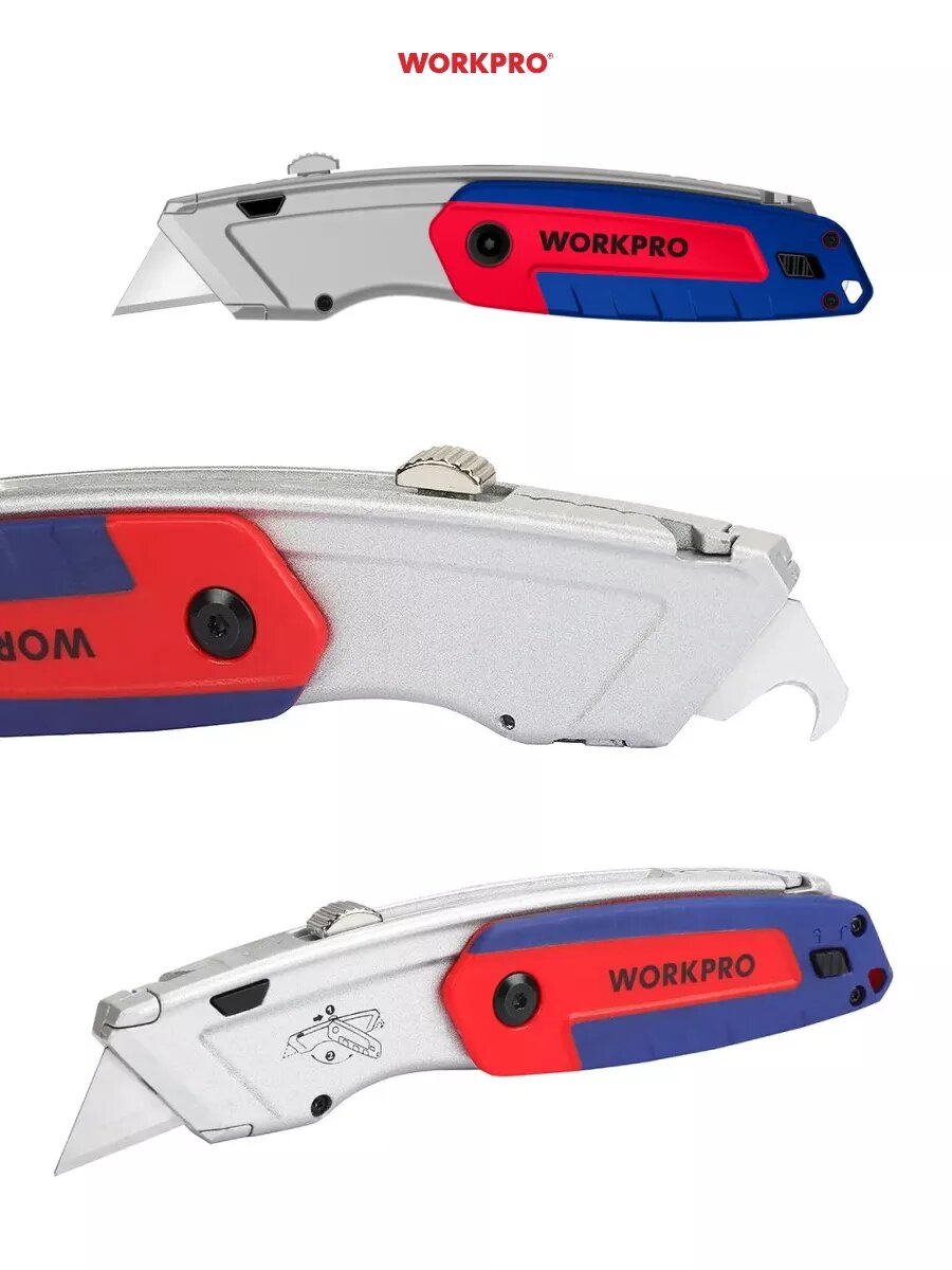 Нож строительный выдвижной универсальный + 3 лезвия WP213008, WORKPRO #wp213008