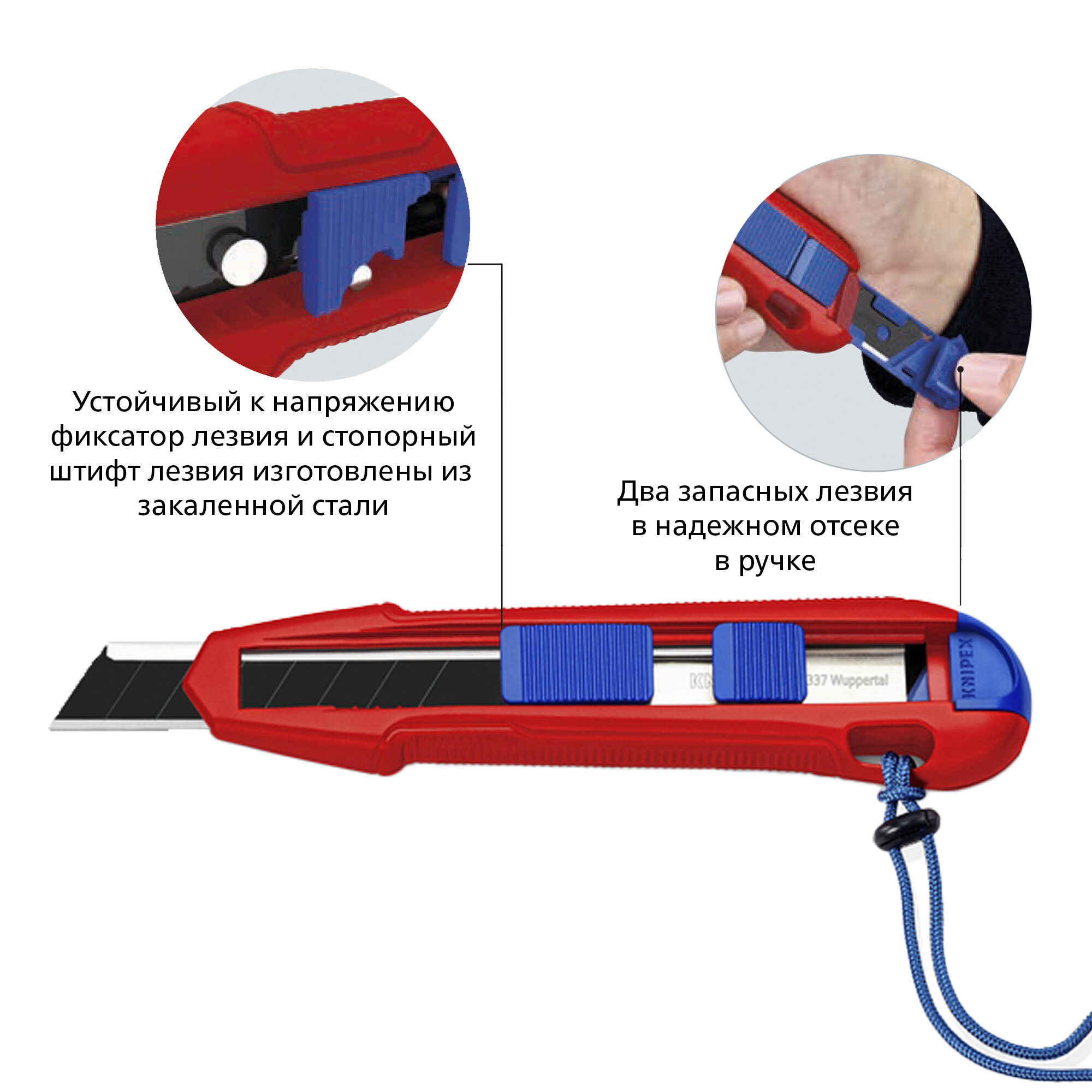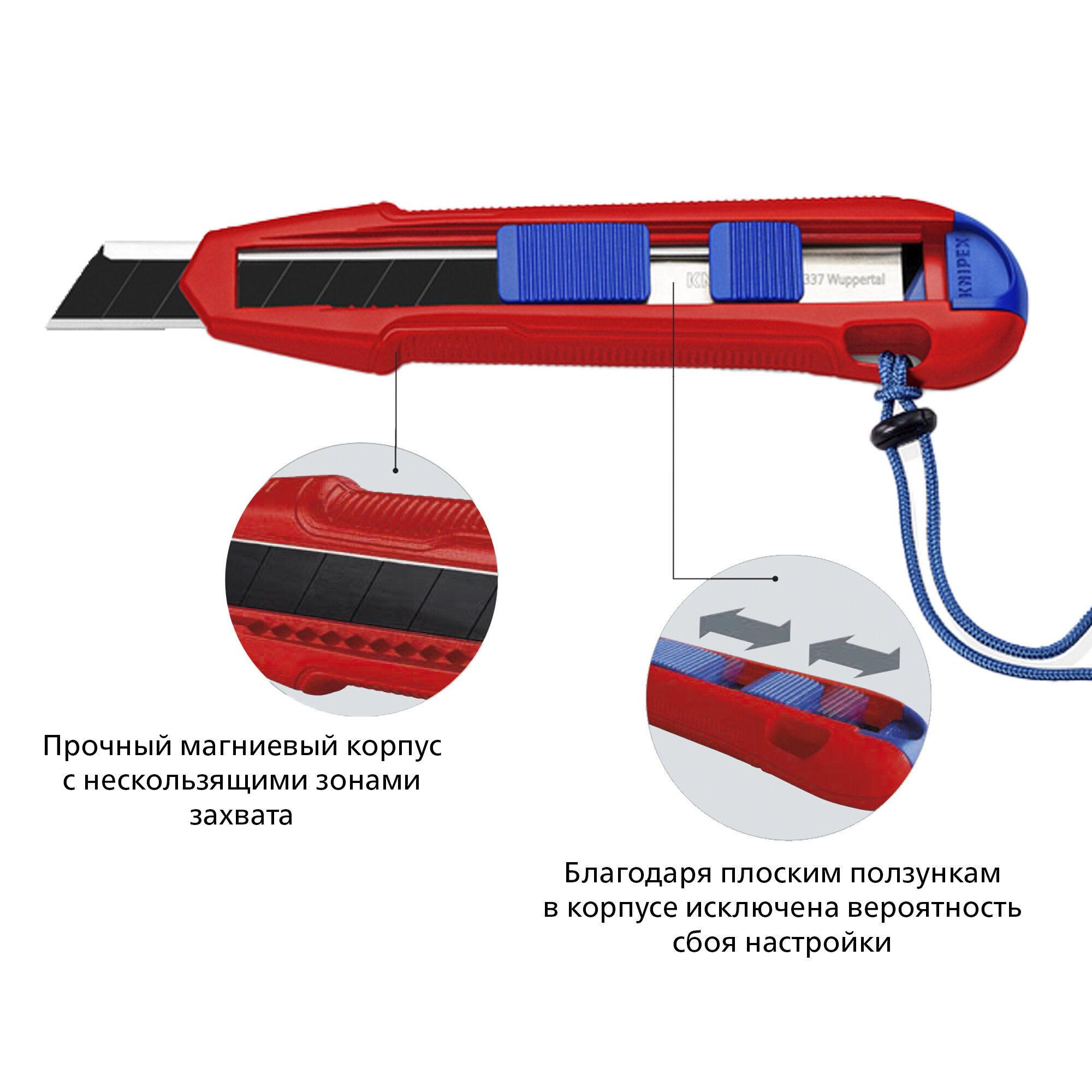 Нож универсальный / KNIPEX / CutiX для стандартных, отламывающихся лезвий на 18 мм, длина 165 мм. KN-9010165BK интересное: