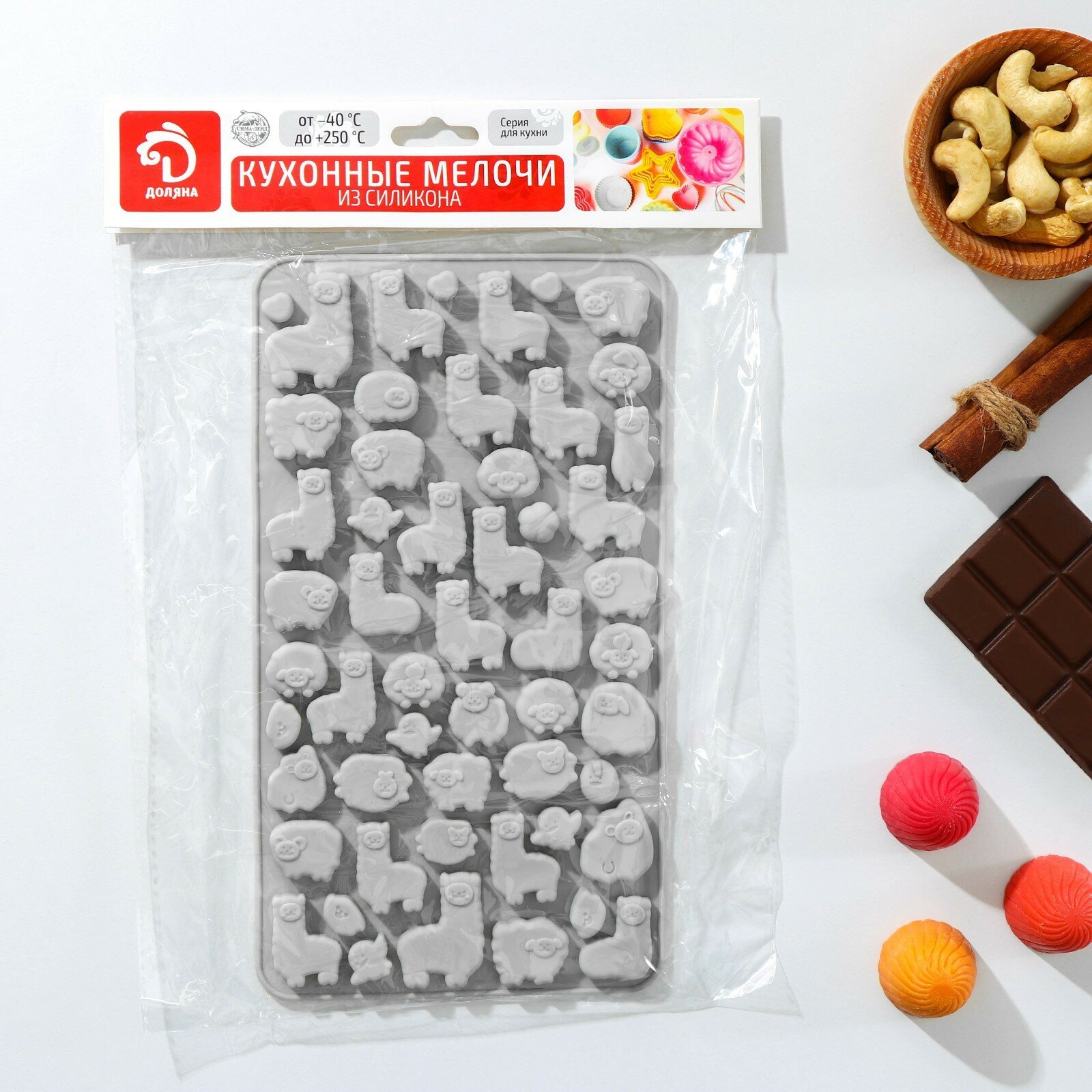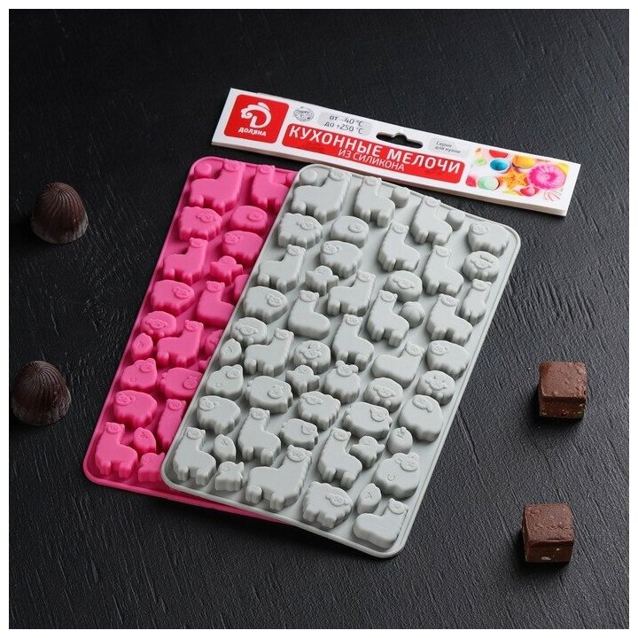 Форма для мармелада Доляна "Ферма", силикон, 23×12,5×1 см, 53 ячейки, цвет Разные цвета интересное: