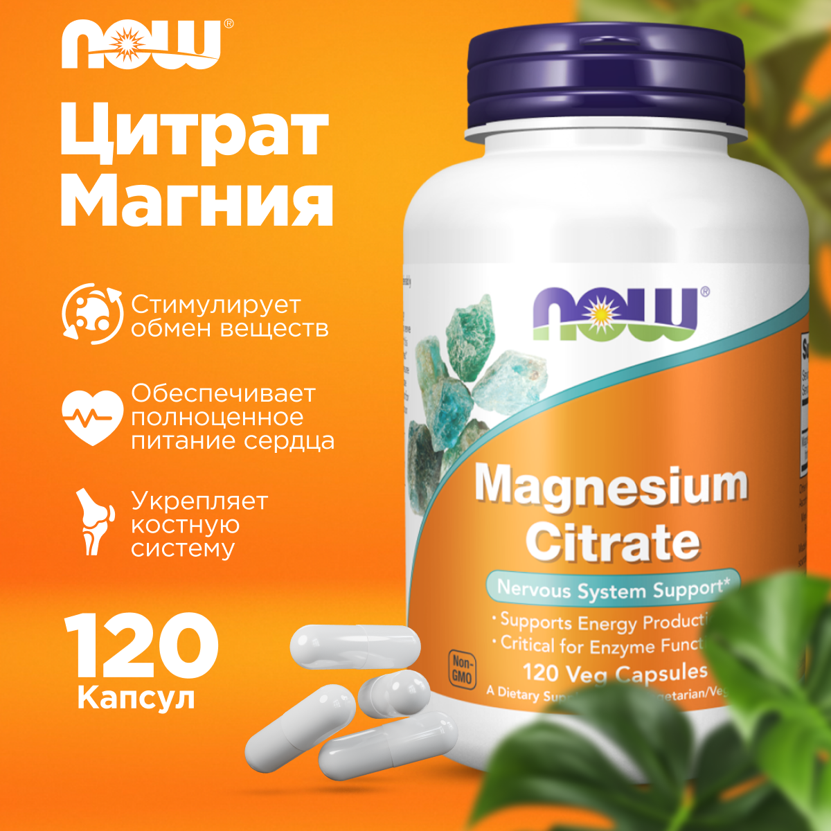 БАД NOW Foods Magnesium Citrate , 120 капсул, для сердечно-сосудистой и нервной систем