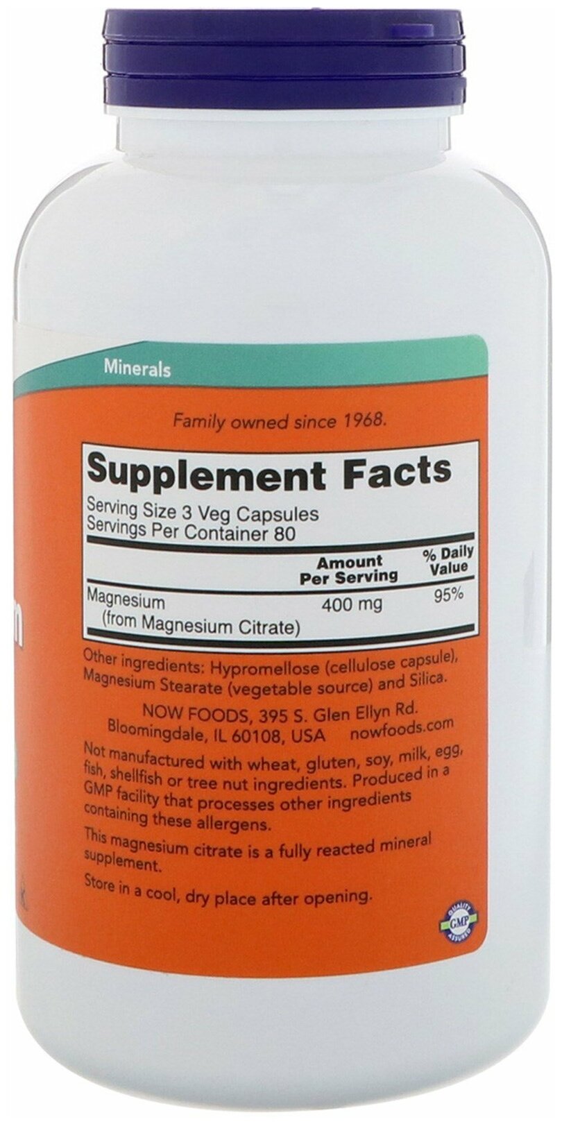 | Комплектация | NOW Foods, Magnesium Citrate, цитрат магния, 120 вегетарианских капсул - 1 банка |