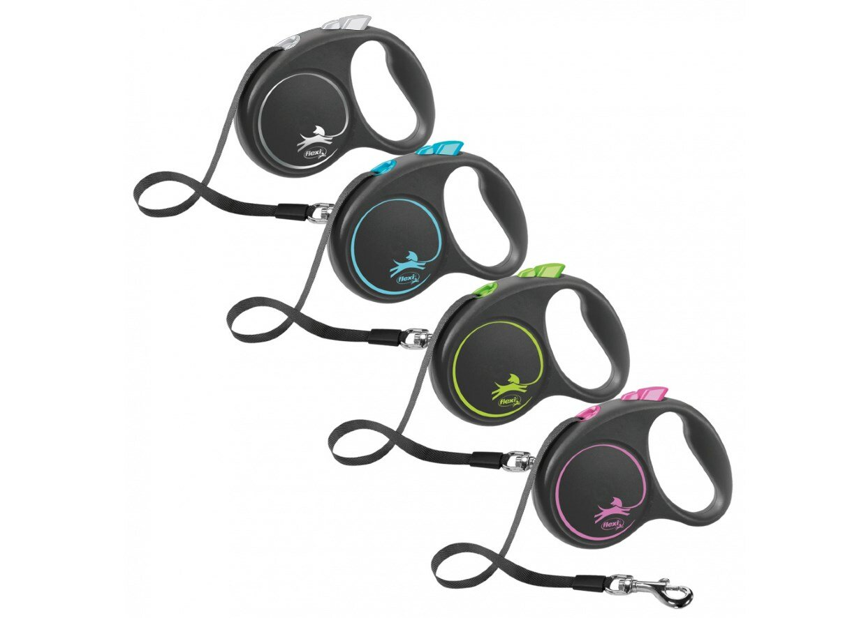 Flexi New Black Design Рулетка черно-синяя L лента 5м до 50кг