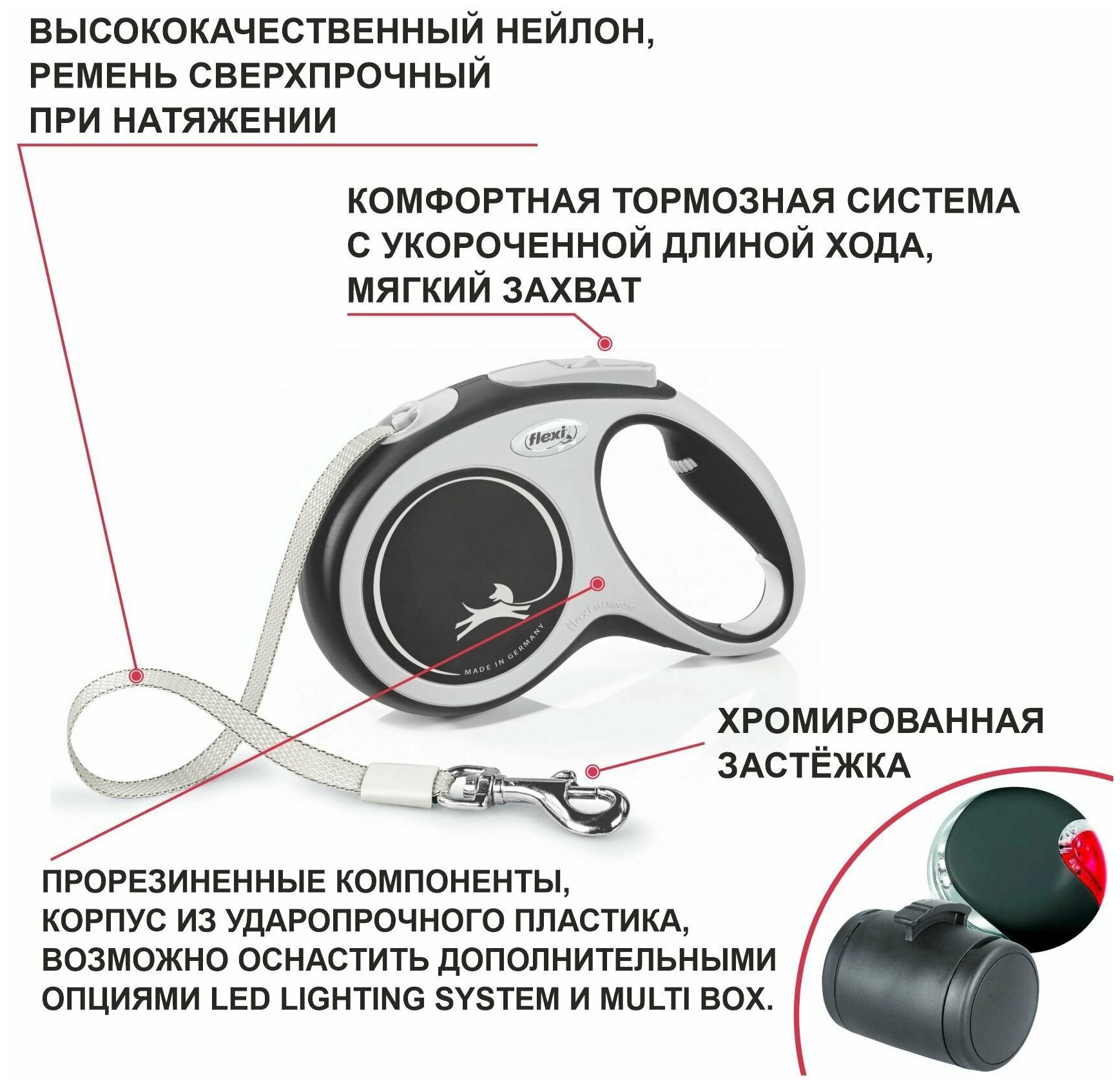 Flexi Black Design Рулетка для собак весом до 50 кг длинна 5м с ремнём