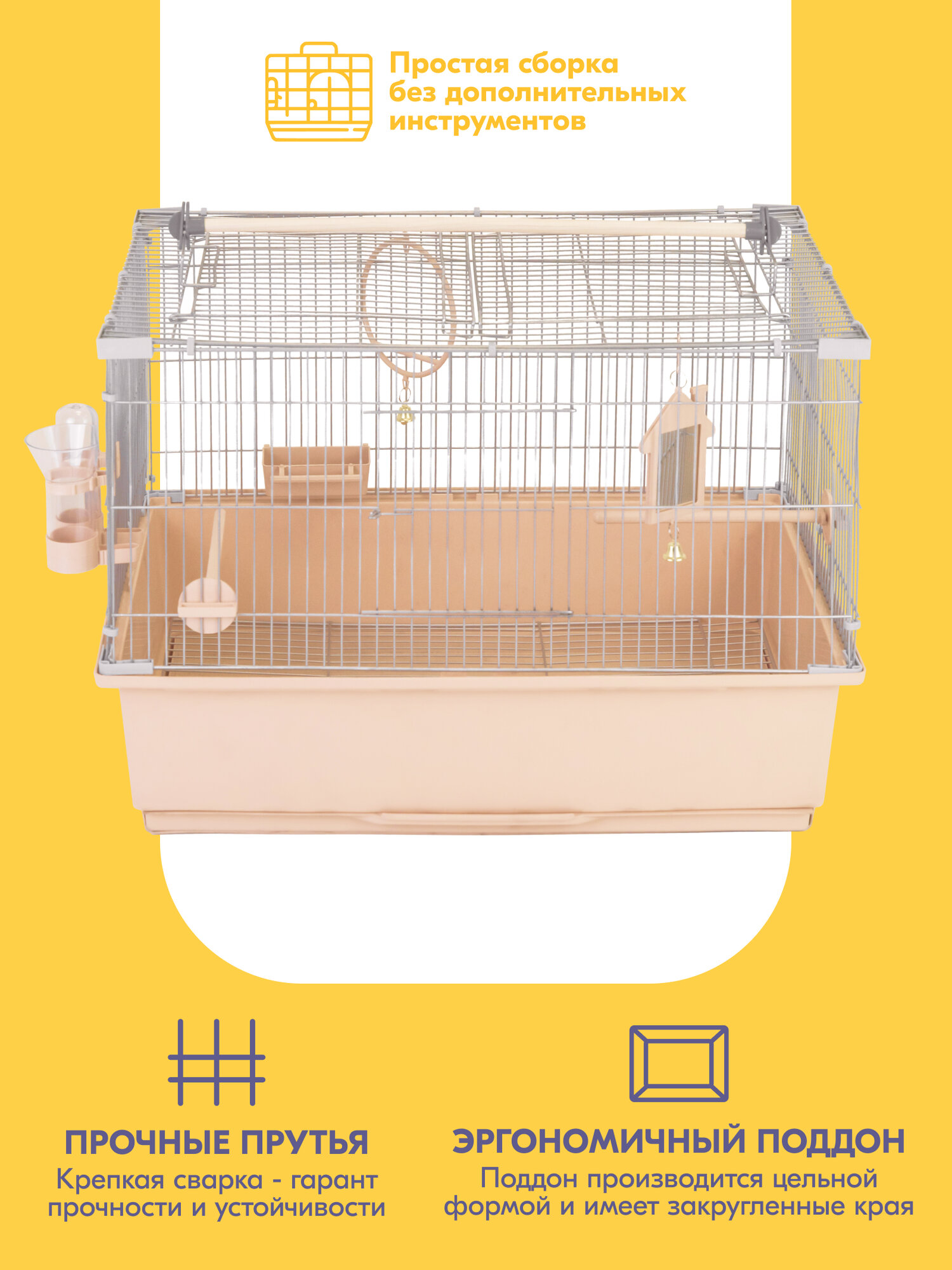 | В комплекте | жёрдочка / зеркальце / качели / кормушка / поилка |