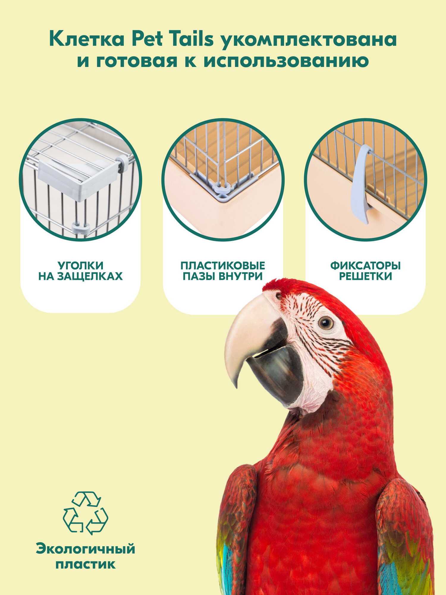Клетка ГОВОРУН-1 "PetTails" для птиц разборная 60 х 40 х h49, 1 этаж, бежевая