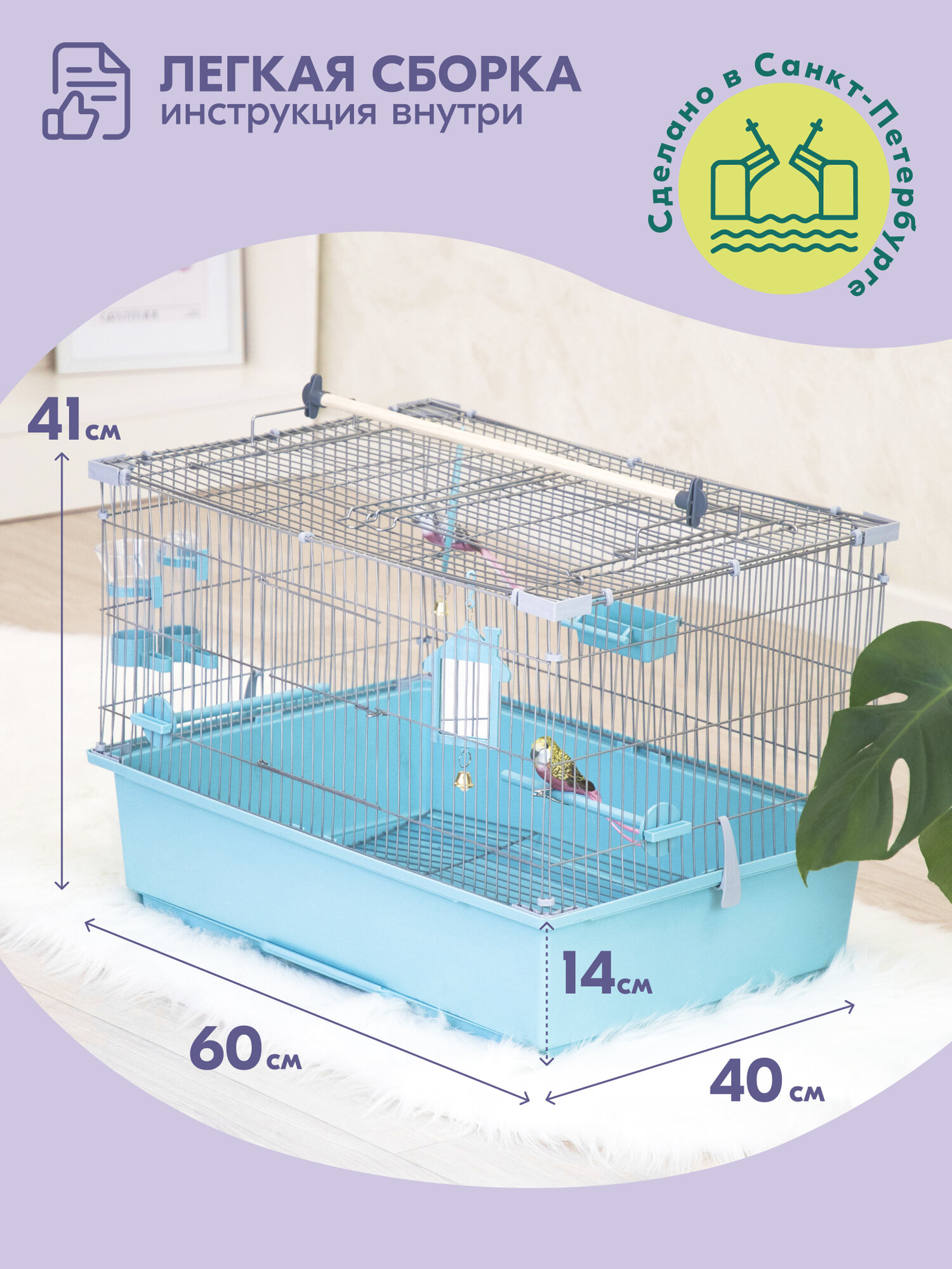 Купить Клетка ГОВОРУН-1 "PetTails" для птиц разборная 60 х 40 х h41, 1 этаж, бирюзовая