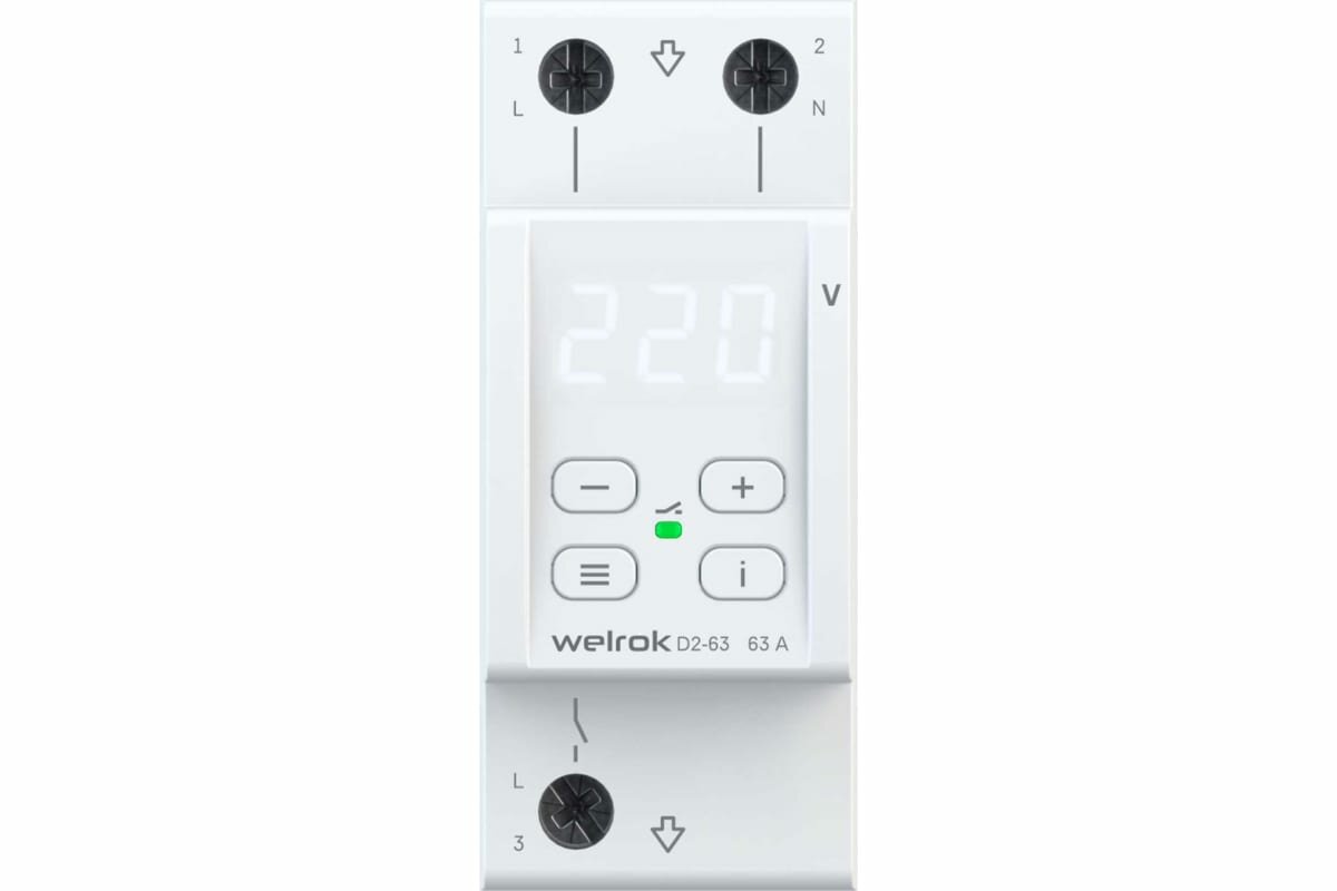 Купить Реле напряжения Welrok D2-63, 63А, однофазное, двухмодульное с белой индикацией, улучшенный аналог RBUZ D2-63