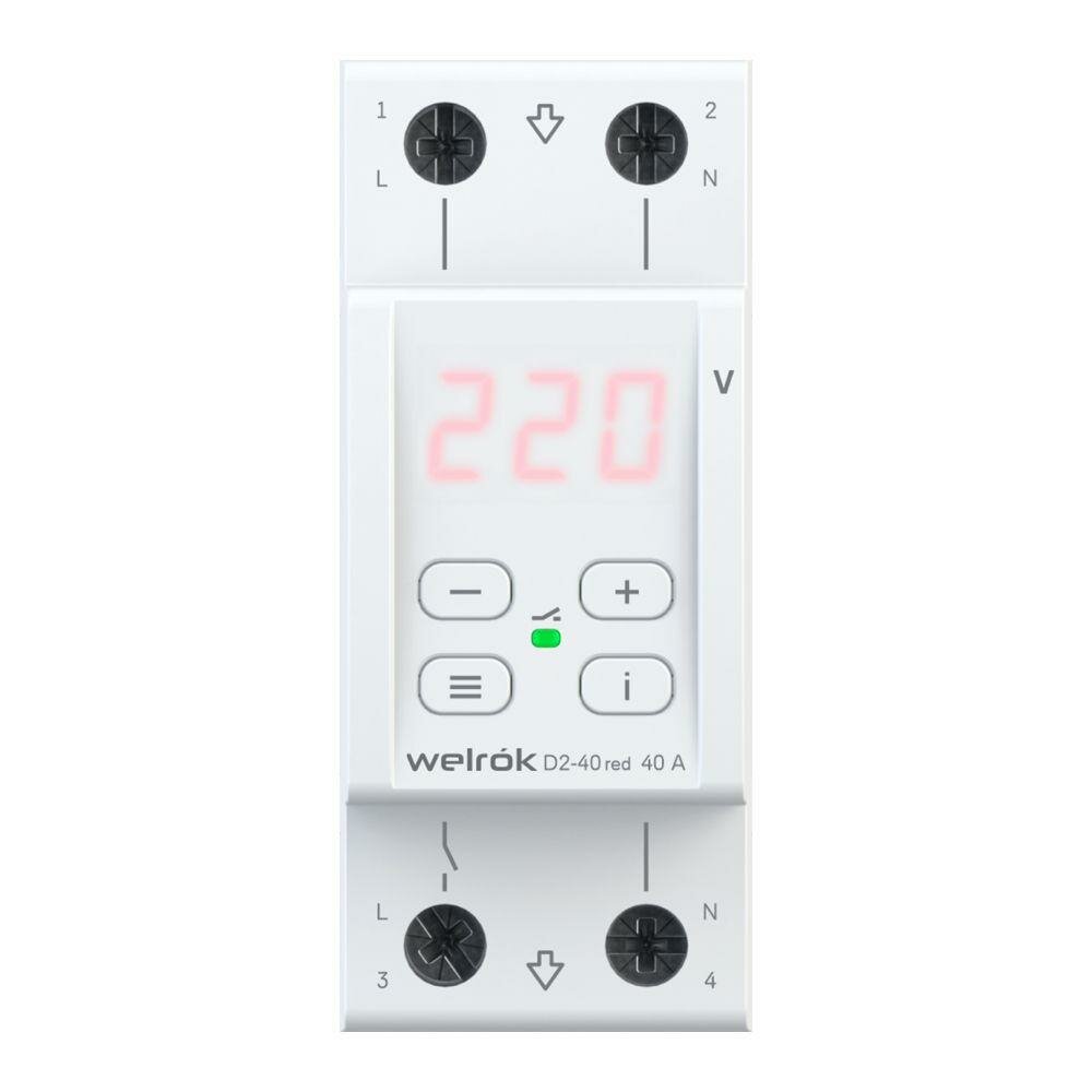 Реле контроля напряжения Welrok D2-40 red, однофазное, двухмодульное, 40А, с красной индикацией, три клеммы