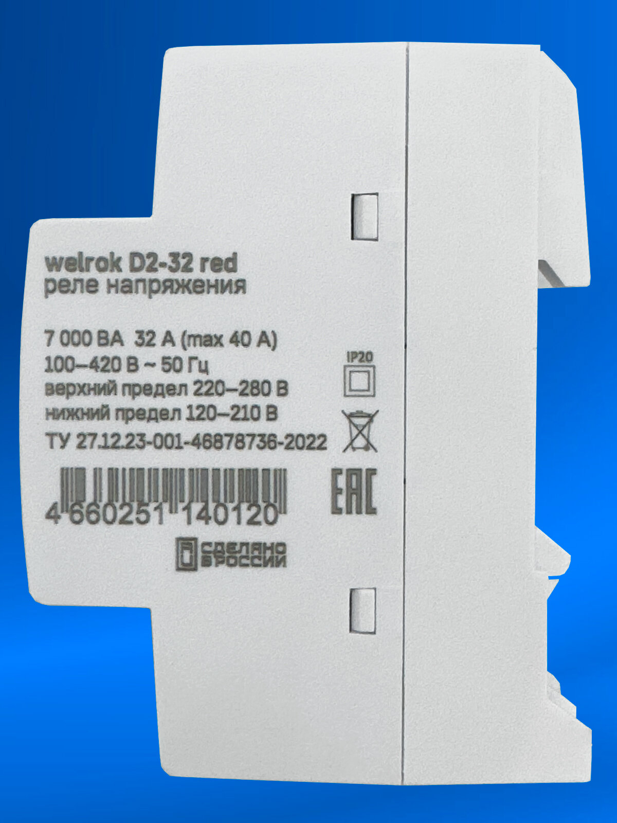 Реле напряжения Welrok D2-32 RED, 32А, однофазное, двухмодульное с красной индикацией, улучшенный аналог RBUZ D2-32