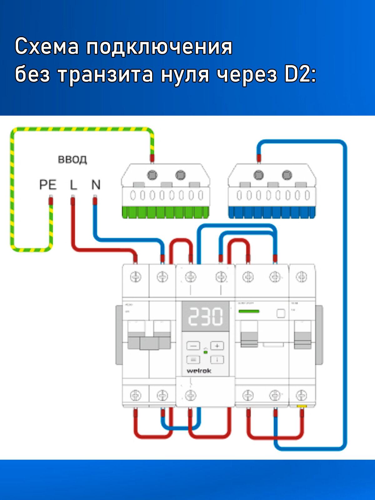 Реле напряжения Welrok D2-50 RED, 50А, однофазное, двухмодульное с красной индикацией, улучшенный аналог RBUZ D2-50
