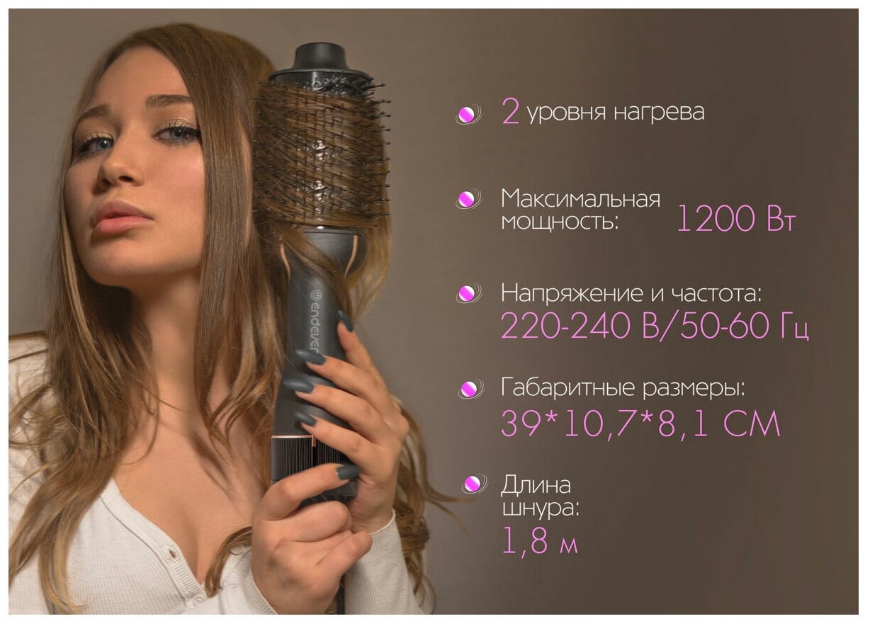 Фен-щетка Endever Aurora-499 (90293) черный интересное: