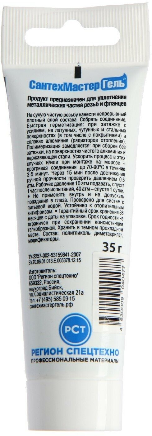 Анаэробный герметик "Сантехмастер Гель" Красный, тюбик 35 г, с еврослотом.