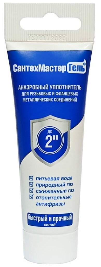 Гель анаэробный уплотнитель СантехМастер, герметик для резьбовых соединений, синий 60 гр, 1шт