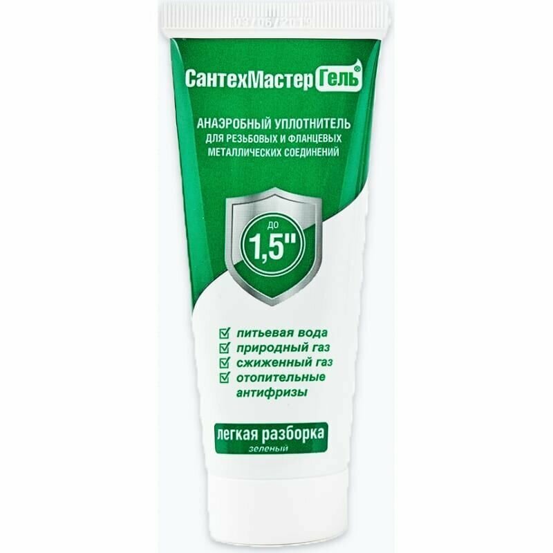 Герметик анаэробный, 15 гр Сантехмастер Гель, зеленый для воды, газа, топлива