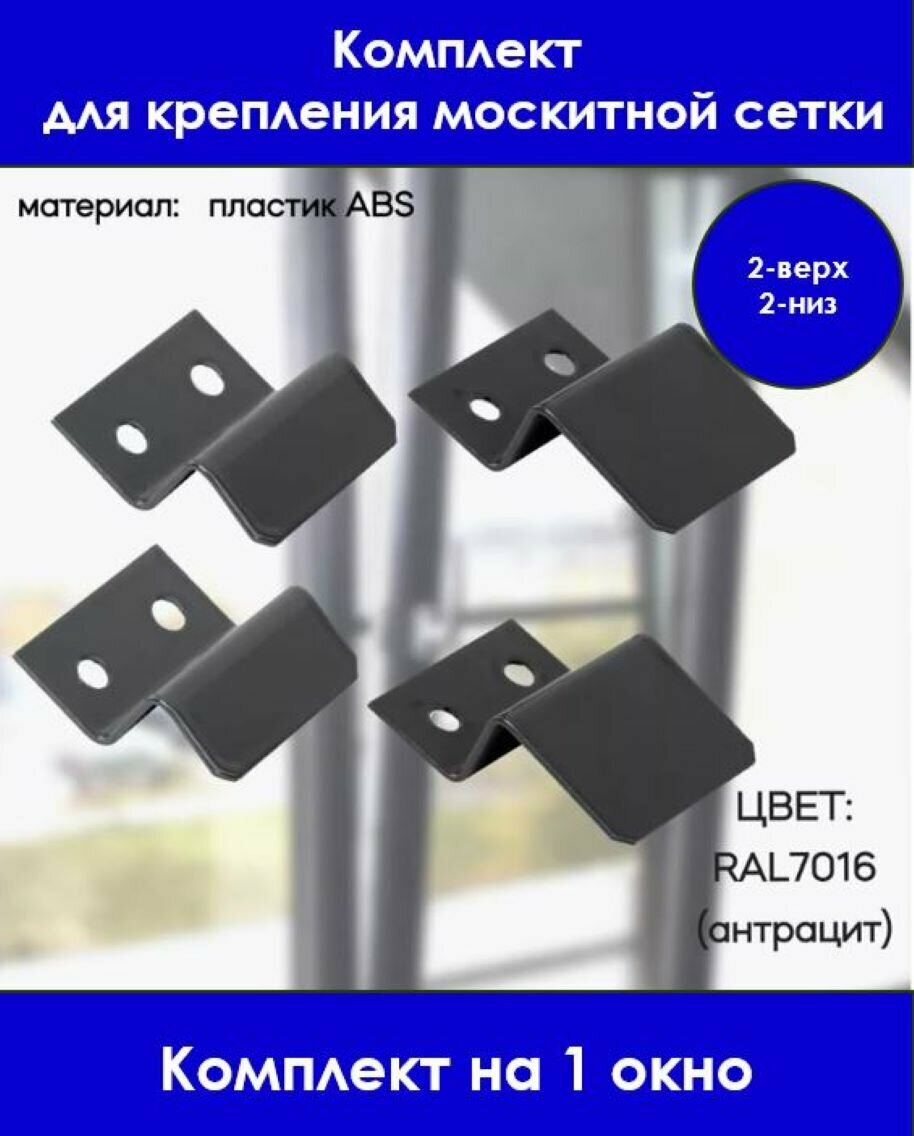 Крепление для москитной сетки, пластик серый (антрацит) 4 шт. (2шт. - верх, 2-шт. - низ)