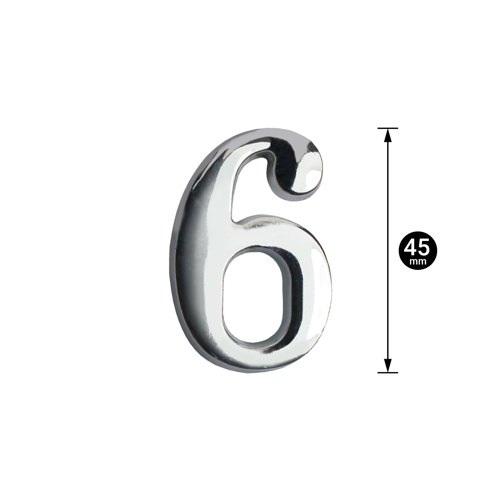 Цифра дверная (металлическая) аллюр "6" на клеевой основе хром